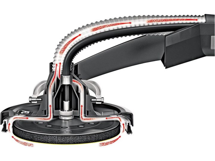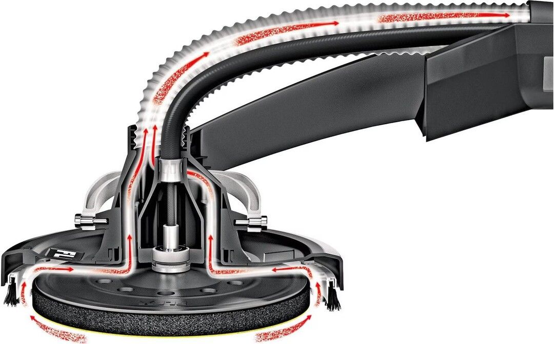 Flex GE 5 Giraffe Grinder er utstyrt med elektronisk styring for kontrollert konstant hastighet, mykstart, overbelastningsbeskyttelse og hastighetsvalg med justeringshjul. Meget hendig, lett maskin med optimal brukervennlighet. Gir komfortable og ergonomiske arbeidsforhold. Enkel kontroll: med optimal balanse mellom motor og slipehode. Pålitelig kraftoverføring og høy fleksibilitet takket være den fleksible drivakselen. "FLEX-teknologien" har vært etablert i flere tiår. Takket være dette designprinsippet er vekten på Giraffe-hodet redusert til et minimum. Dette gjør håndteringen enklere. Gimbal-montert slipehode gir høy fleksibilitet og optimal justering for sliping av vegger og tak. Effektivt støvavsug mellom børsteringen og slipeputen forhindrer tilstopping av slipemiddelet og bidrar til et støvfritt arbeidsmiljø. Mulighet for å koble FLEX-sikkerhetsstøvsugerne til FLEX Clip-systemet på styrerøret. Enkel håndtering takket være det ergonomisk formede føringsrøret i aluminium. Et ekstra håndtak kan monteres som ekstrautstyr (tilbehør). Støvtett av/på-bryter. Svært fleksibel takket være en valgfri 500 mm forlengelse (tilbehør) for høye rom, kan monteres uten verktøy. I henhold til slipepapirutvalget ideelt egnet for sliping av gipsplater, isolasjonsplater av massiv polystyren, forberedelse til maling, polering. Svært store områder og rom med en høyde på opptil 3,20 m kan bearbeides takket være den valgfrie innsatsen for GM 320. Det innovative tekstiltransportsystemet gjør det mulig å transportere maskinen og tilbehøret uten problemer. Giraffe trenger ikke å monteres og er umiddelbart klar til bruk.