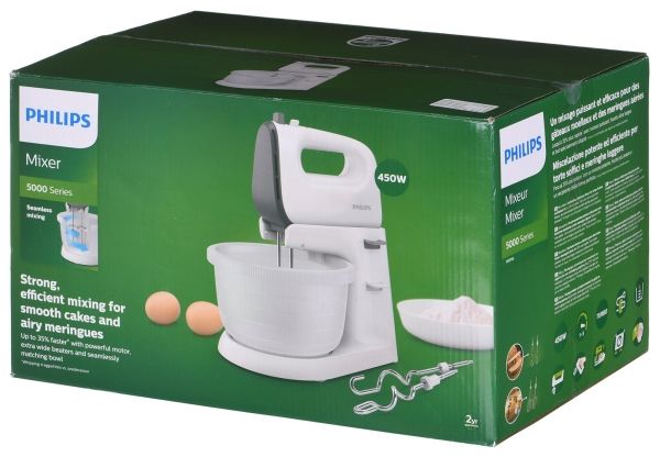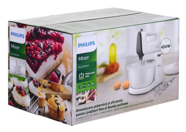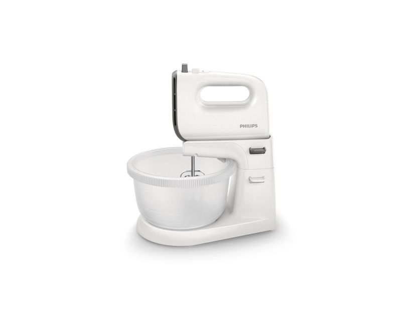 Med Philips-mikseren kan du lage deilige, fløyelsmyke kaker og brød til hele familien. Luftkonisk miksing forkorter tiden det tar å vispe og gjør kakerøren jevnere. Den kraftige motoren på 450 W gjør selv de mest gjenstridige deigene enkle å hanskes med.