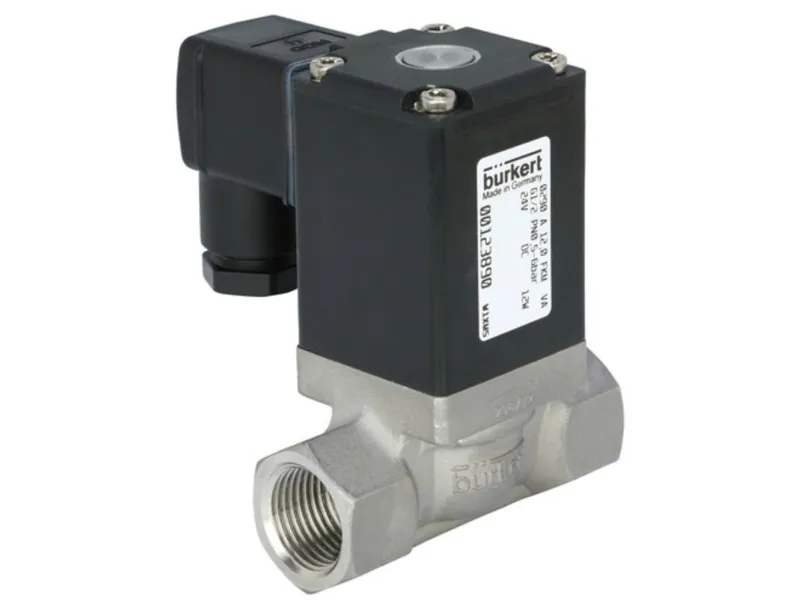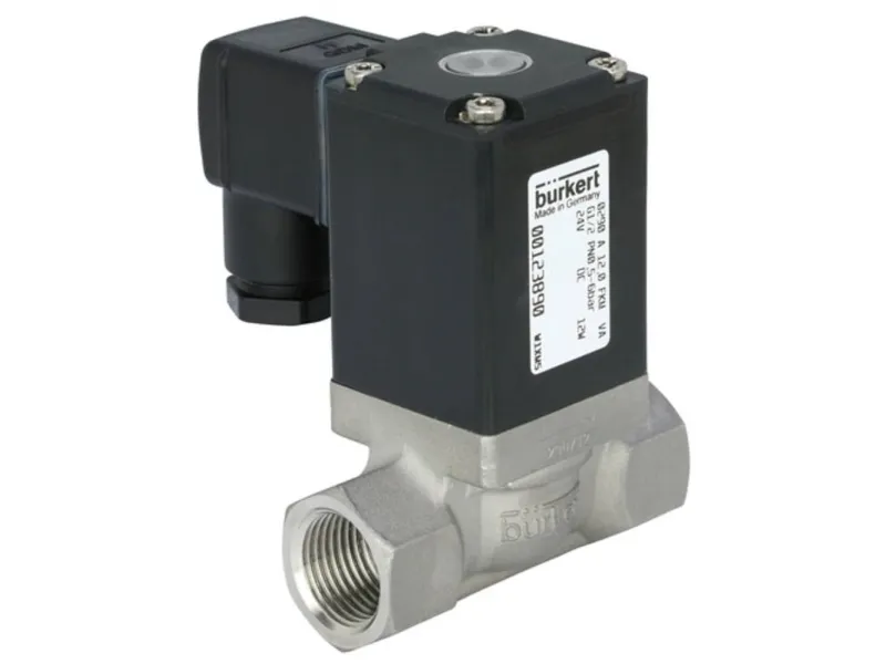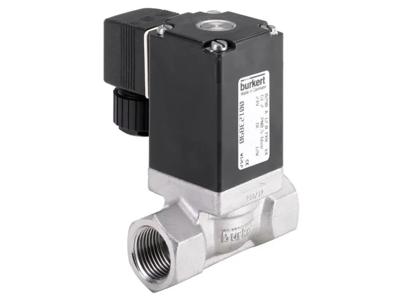 2/2-vejs magnetventil til gasser og væsker Zwangsgekoppeltes gennemgangsventil · Strømløs lukket · Kabinet materiale rustfrit stål · Tæt materiale FKM · Spoler materiale epoxy (Klasse H) · Spændingstolerance: ±10 % · Nominel driftsart: permanent drift 100 % intermittens · Elektrisk tilslutning i henhold til DIN EN 175301-803 form A (tidligere DIN 43650) · Beskyttelsesklasse IP65 med apparatstikdåse · Monteringsposition: vilkårlig, fortrinsvist drev opad Dette robuste gennemgangsventil med servo-membran og festgekoppelter zwangsanhebung er strømløst lukket. Det egner sig perfekt til vakuum eller lukkede styretrykkredsløbene til neutrale gasser og væsker.