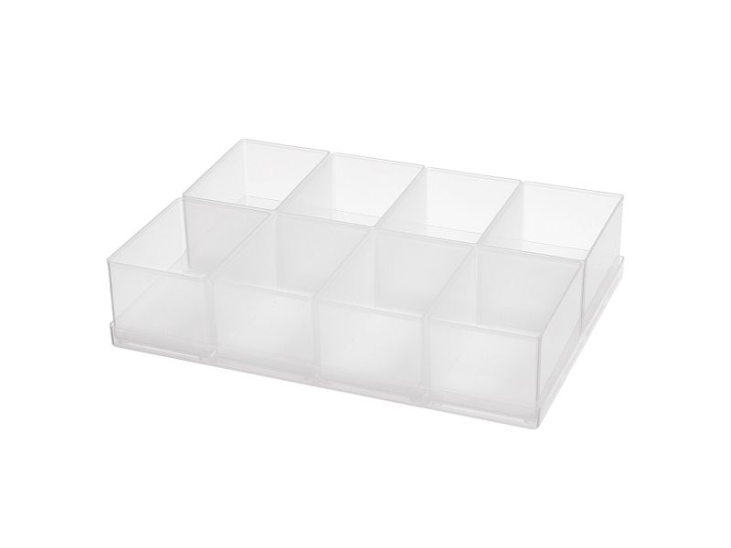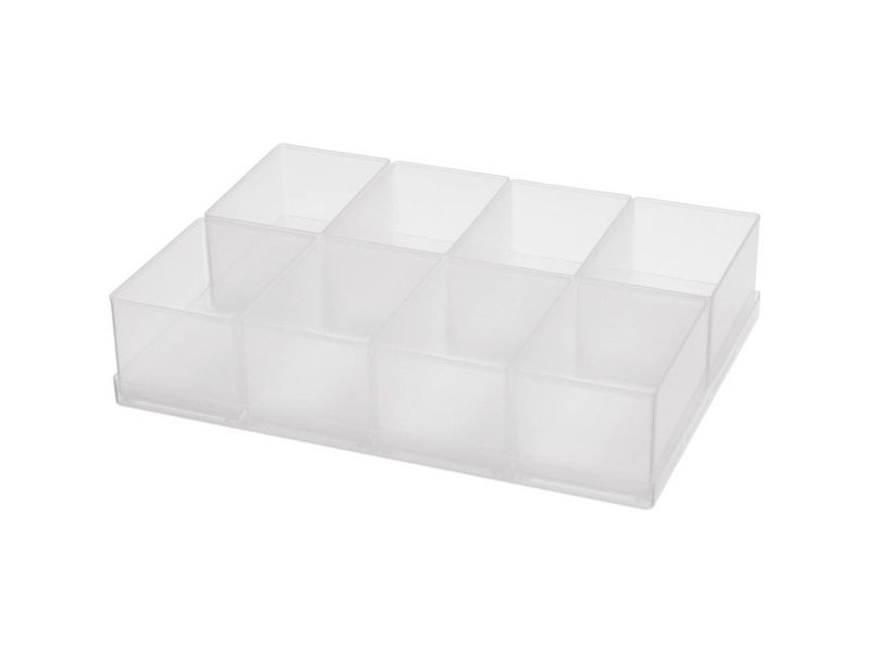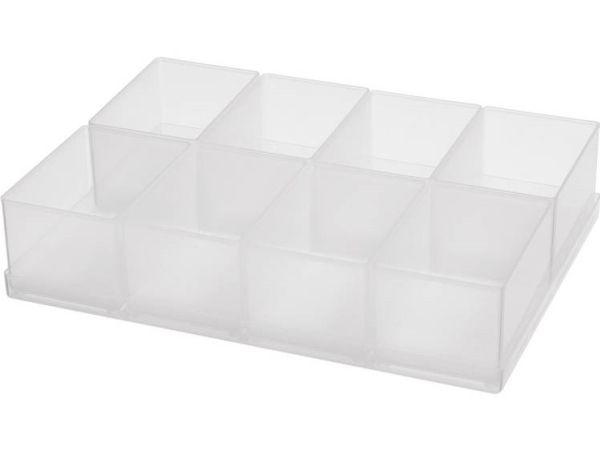 8 A ETS8 -1.2 indsatser som sæt (på praktisk tablar) til opdeling af CarryLite assorter boxxser 55, 55, 55, Compact kuffert, skuffe 250-3 og bundbakke 55 af Tool Case. Fremstillet af PP.