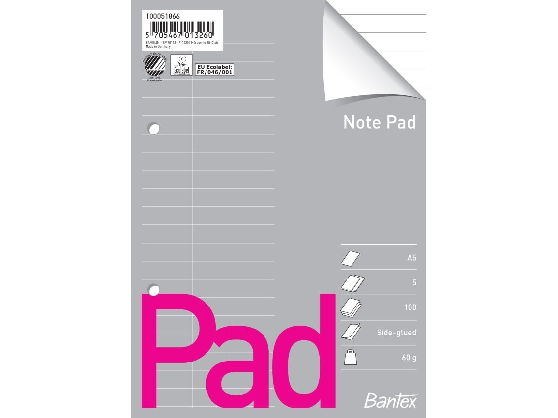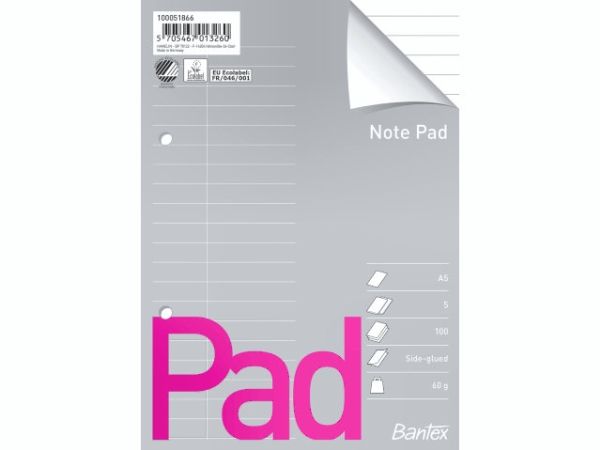 Standardblok u/omslag A5 linieret med 2 huller - (5 stk.)