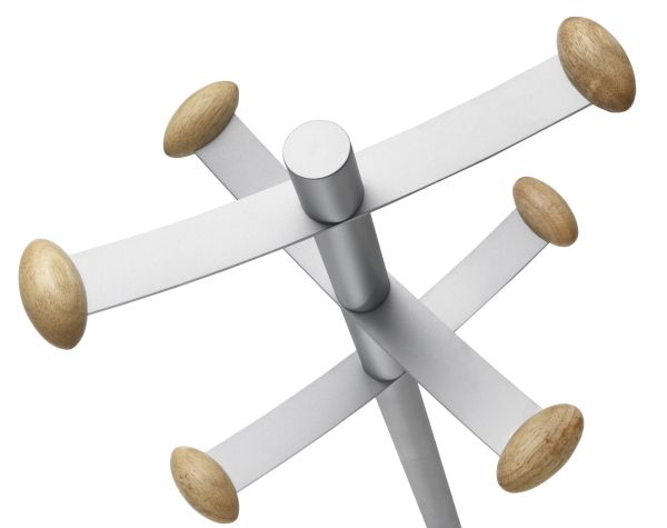Bouquet stumtjener udstyret med 6 kroge i stål og ægte træ. 4 kg. gulvbase sikrer stabilitet.