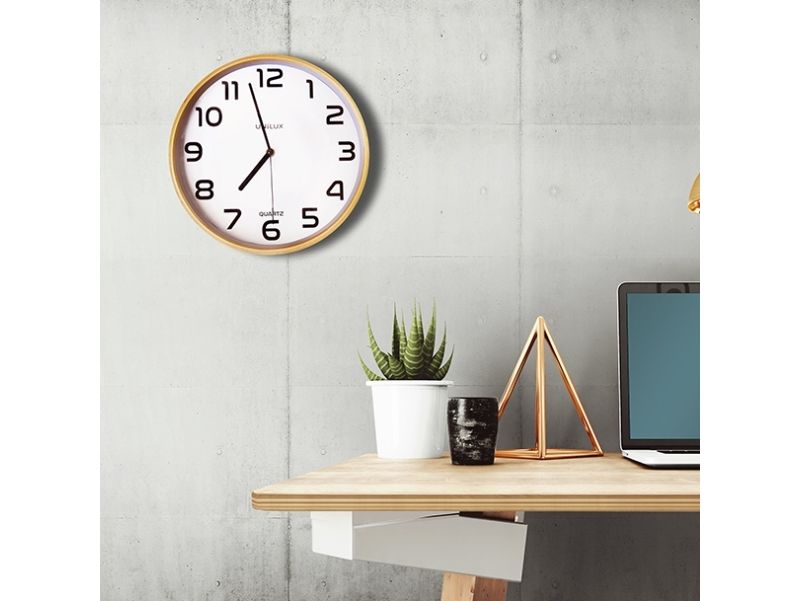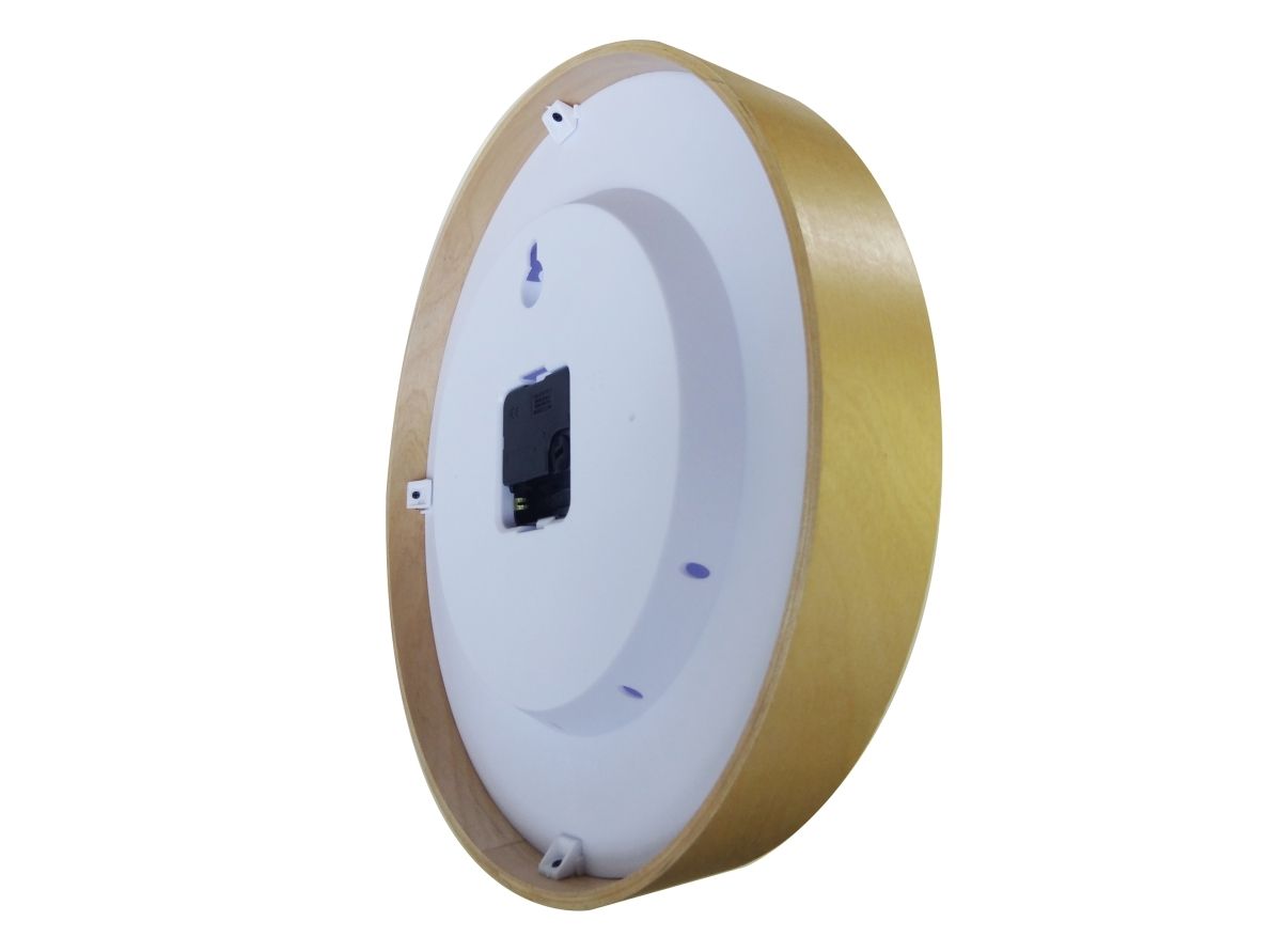 Miljøvenligt vægur. Produceret i miljøvenlige materialer som træ og plast. Designet er meget moderne, og med dets lyse træstruktur, giver det uret et stillrent og enkelt design. Uret er lydløst. Læsbart op til 30 meter. Diameter 30,5cm. Inkl. 1 stk. 1,5V AA batteri.