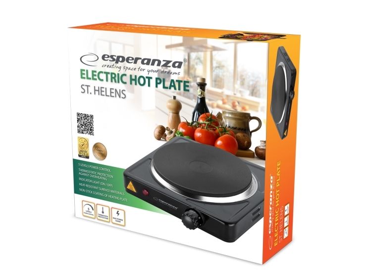 Esperanza ST. HELENS - Elektrisk kokeplate - 1 kW - svart