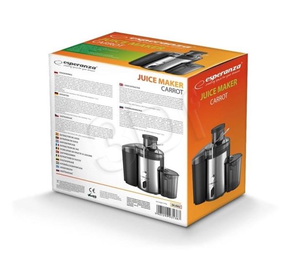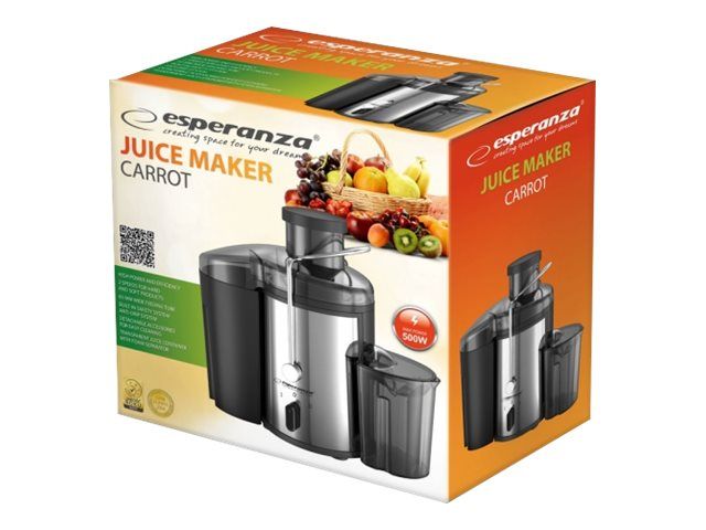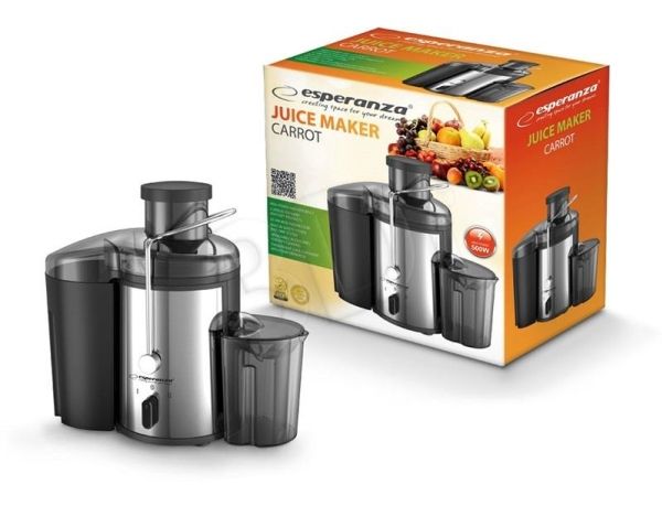 Start your day with a serving of healthy juice-derived vitamins prepared at home. With this Esperanza CARROT juice extractor, you get fresh juice from fruits and vegetables quickly and efficiently whenever you want. It is equipped with a wide feeder to process large and whole fruit or vegetables. Made from the highest quality stainless steel. Thanks to 21 thousand rotates per minute and its micro-mesh filter you will prepare more healthy and nutritious juice. The juice extractor has a waste container with a capacity of 1500 ml and a transparent jug with foam separator with a capacity of 450 ml. Using and cleaning this type of appliance has never been easier. Its drip protection mechanism will keep the working environment clean and dry. It is essential in the kitchen for people who value their own health and health of their loved ones.