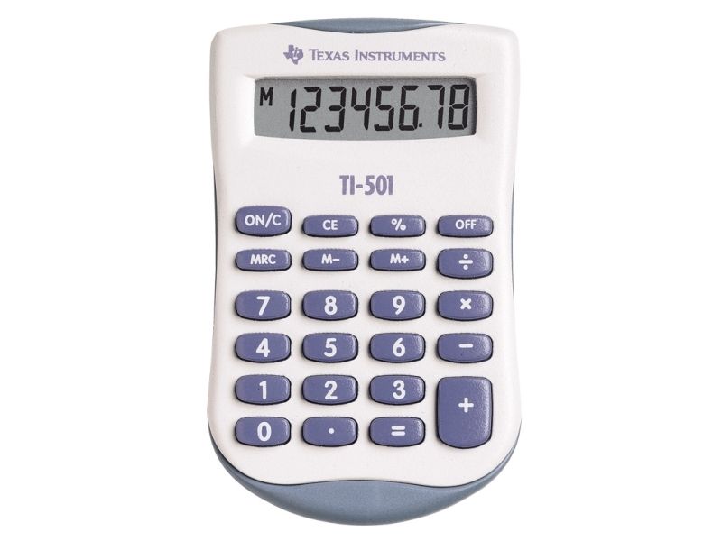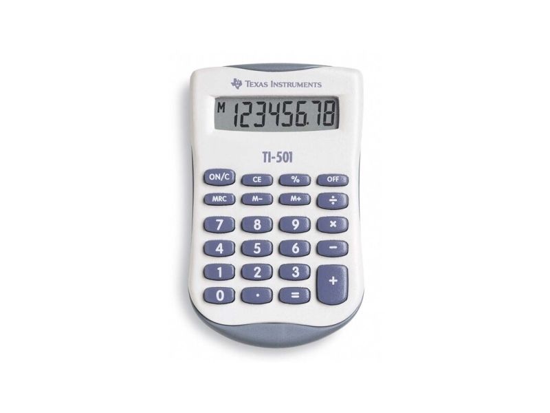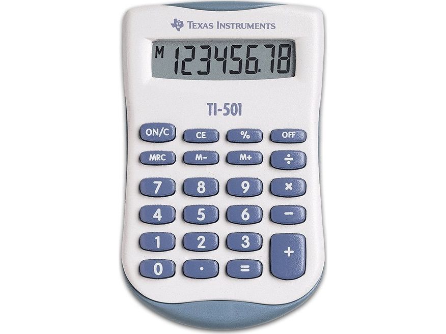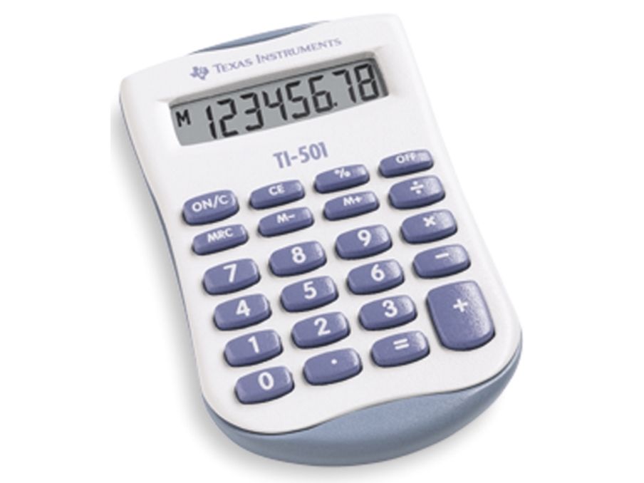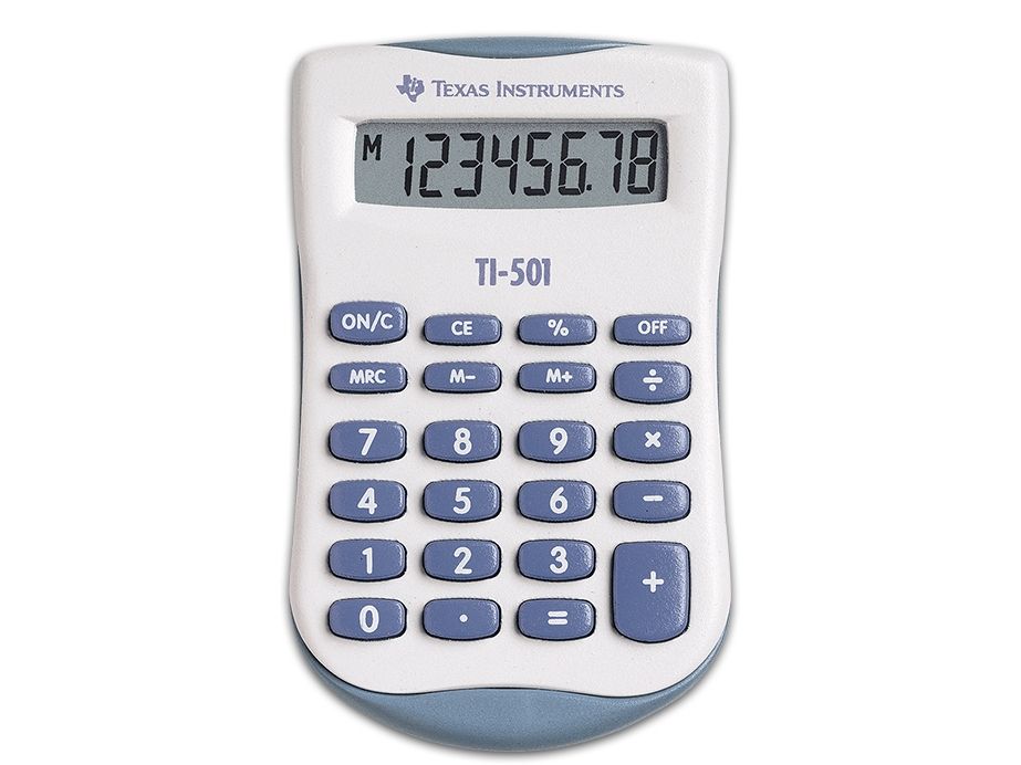 Texas Instruments TI-501, Lomme, Grunnleggende, 8 sifre, Batteri, Blå, Hvit