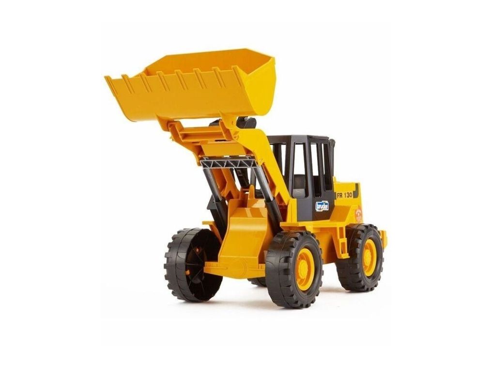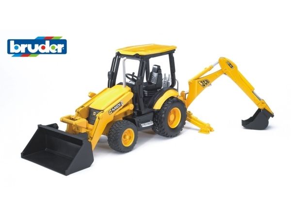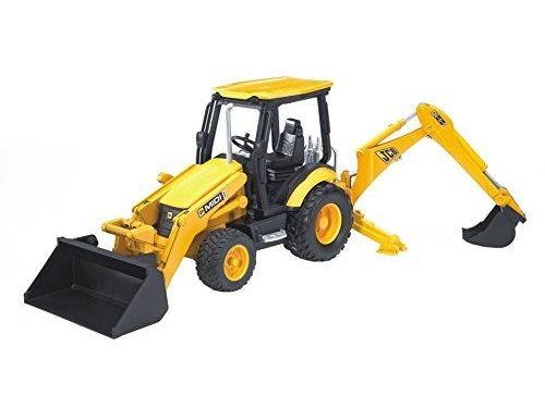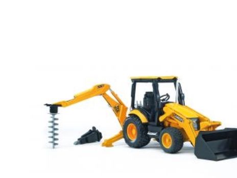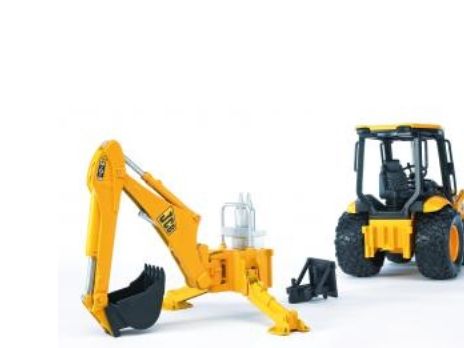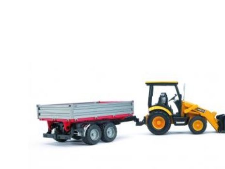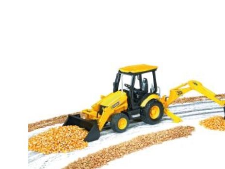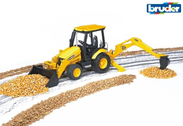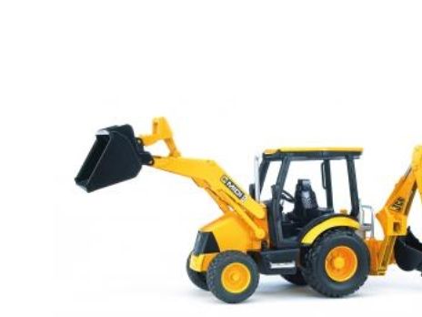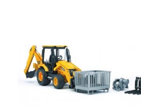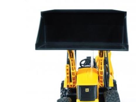 The 50HP backhoe loader with a speed of 26 km/h, distinguished by leading specialist journalists with the demopark Gold Medal, is small, agile and can be equipped with classic farming implements. It can be used on large and small construction sites and combines 3 tools in one: a mini digger, a compact wheel loader and a compact tractor. This innovative concept makes it an ideal tool for landscaping as well as for completing a wide range of communal tasks in civil engineering. The versatile work options are reproduced in the true-to-the-original BRUDER model. For this reason it actually has a fully functional (and detachable) front shovel as well as a fully usable and detachable backhoe loading unit with one-handed operation. Two fold-in support legs give the backhoe loader stability, the floating axle for every terrain and tread tyres complete the picture. The backhoe loader can be provided with a standard tractor coupling to add to the fun of playing when the front end loader is detached which enables all trailers and equipment of the farming series to be used.