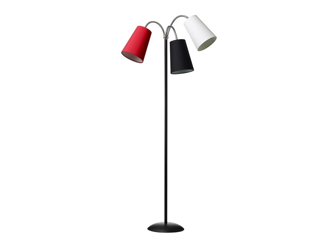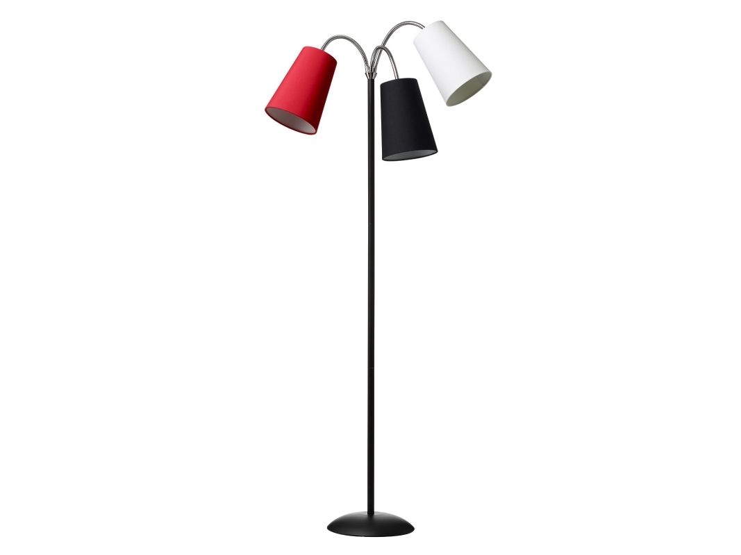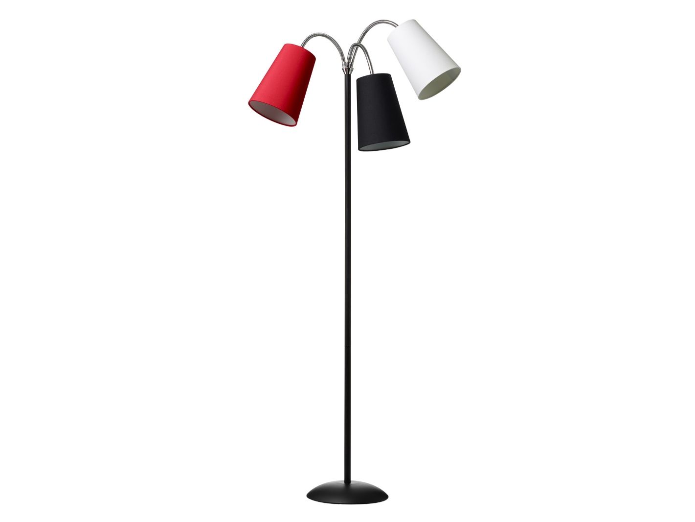 Salsa gulvlampe med sort fod og 3 skærme (hvid, sort og rød). Med tre fleksible kromarme og afbryder på ledningen. E14 x 2 - Max 40 Watt