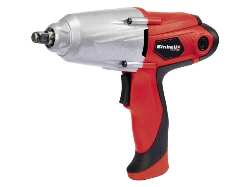 Einhell CC-IW 450. Product type: Impact wrench, Product colour: Aluminium, Black, Red. Idle speed (max): 2600 RPM, Torque (max): 300 N⋅m, Noise level: 100 dB. Power source: AC, Input power: 450 W, AC input voltage: 230 - 240 V. Weight: 2.04 kg, Package weight: 3.06 kg