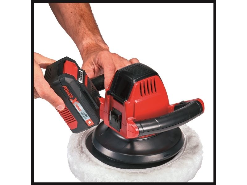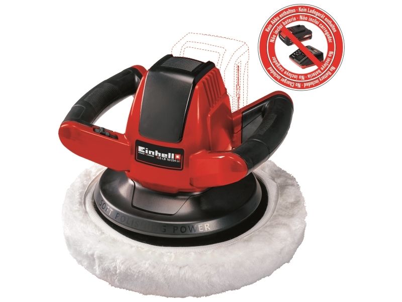 Brug Einhell CE-CB 18/254 Li - Solo akku-bilpoleremaskinen til at få din bil til at skinne i løbet af kort tid. Hemmeligheden: Fleksibilitet og bevægelsesfrihed under arbejdet på grund af det genopladelige højtydende Li-ion-batteri. Batteriet indgår i den innovative Power X-Change-familie fra Einhell og kan bruges i alle enheder i serien. Den holdbare poleremaskine er brugervenlig og robuste design, og softgriphåndtaget giver et perfekt og behageligt greb om maskinen, som reducerer træthed under brug. Polereskiven har en diameter på 254 mm og polerer effektivt med sine 2.500 o/min, så køretøjet kommer til at skinne flot. Af hensyn til sikkerheden er maskinen forsynet med en let tilgængelig tænd/sluk-knap og overbelastningssikring. Først påføres poleremidlet på den lakerede flade ved hjælp at polerehætten af stof. Derefter bruges den syntetiske polerehætte til efterpolering, så der opnås en langvarig glans. Polerehætterne medfølger. Batteri og oplader kan om nødvendigt købes separat.
