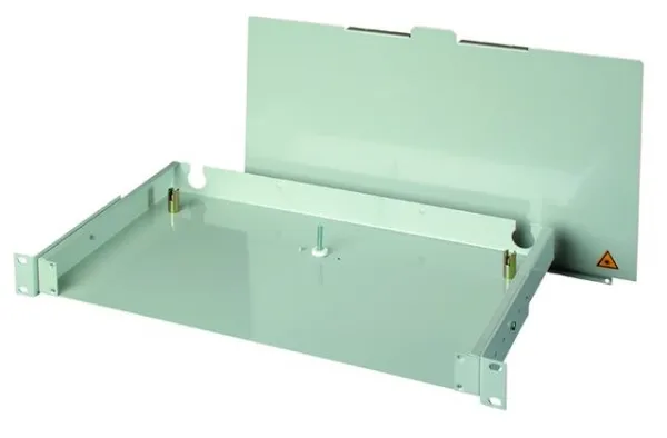 BASIS V allows installation of up to 4 incoming multifibre cables with total 144 fibres maximum and distribution of them via up to 4 splice cassettes. Using two fixing brackets supplied the panel may be also installed in the rack at 50 mm backward displacement from the rack front.