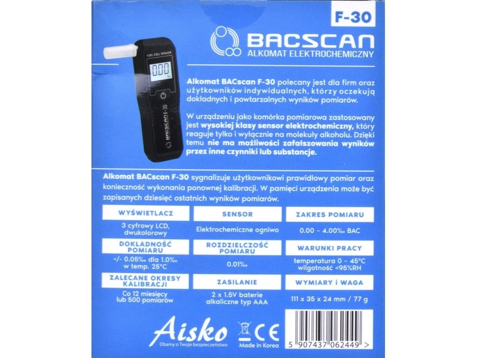 HI-TECH MEDICAL BACSCAN F-30. Display: LCD. Battery technology: Alkaline, Battery voltage: 1.5 V. Width: 35 mm, Depth: 24 mm, Height: 111 mm. Number of products included: 2 pc(s)