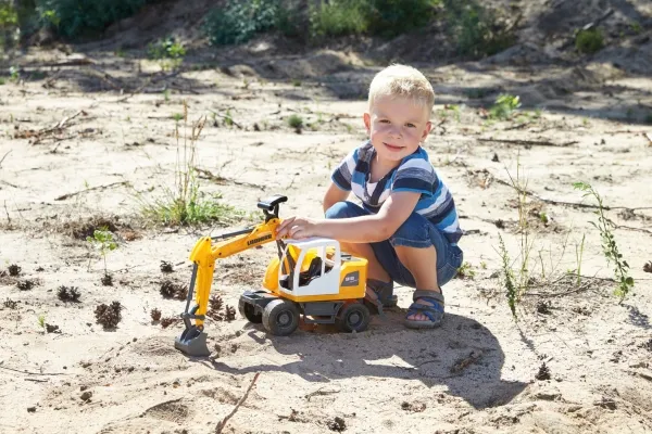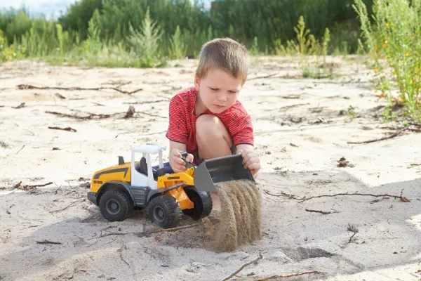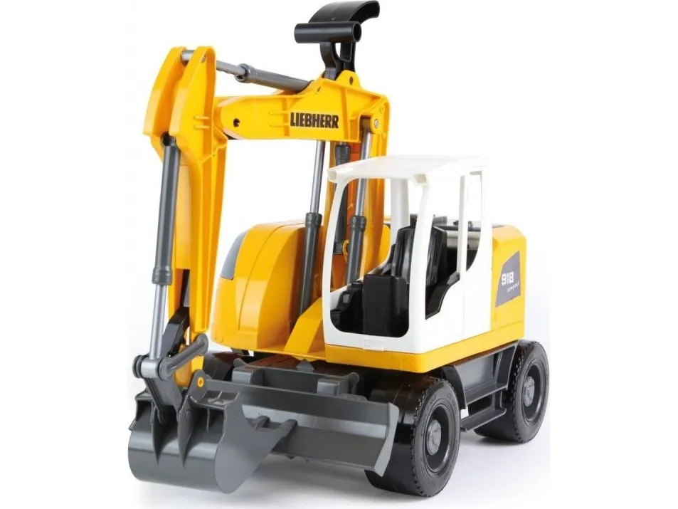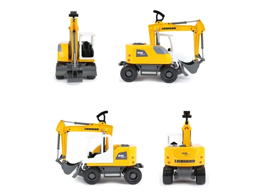 LENA® Rendegraver Liebherr A918 Litronic er en realistisk kopi af originalen. Det robuste køretøj med en længde på 48 cm er velegnet til indendørs og udendørs brug. Sort/gulfarvet bil i moderne og detaljeret design er udstyret med 6 mm galvaniserede stålaksler og tilbyder fantastiske funktioner. For eksempel er gravemaskinen 360 ° drejelig, skovlarm er struktureret i tre segmenter og kan håndteres let ved en raffineret løftefunktion. Præcis som originalen - har vores gravemaskine et fast skjold i bunden, som hjælper med at skubbe sand og lignende materialer sammen, før det løftes.