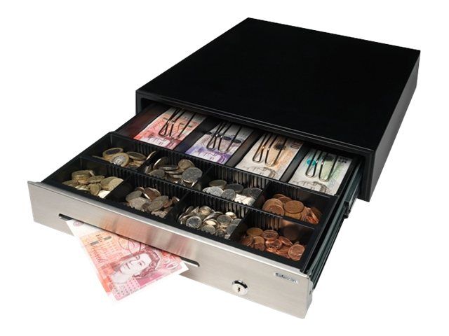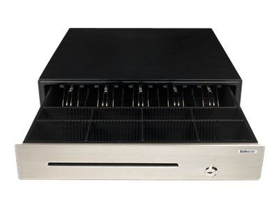 This heavy-duty cash drawer is ideal for use in high volume environments such as retail stores, bars, restaurants and petrol stations. Due to the strong telescopic slides and solid metal build, this cash drawer is tested for at least 2 million openings. The cash drawer can be opened by key or can be connected via the RJ12 printer cable to a receipt printer or cash register for electronic opening. The HD-4141S has 4 adjustable banknote compartments and a removable and adjustable tray for 8 different coins. There is also a separation slot for storing large banknote denominations and value papers out of sight.