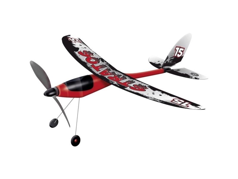 Vores propeller med gummimotor er genialt nemt: De flyver op til 100 meter langt, og samtidig behøver motoren ikke en lille smule strøm. Dette skyldes, at den får sin energi fra et gummibånd, der er fastgjort til propellen. For at de små kraftpakker ikke skal blive til noget ved landingen, har vi styrket dem hele vejen rundt. Før start drejer propellen op med hånden, indtil gummibåndet er helt spændt inde i flyet. Og så går det løs! Kraftfuldt starter propellen, og gummiopladningen er nok til en rigtig bred flyvning.