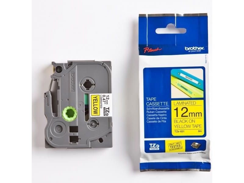 Brother TZe-631 - Standardklebemiddel - svart på gult - Rull (1,2 cm x 8 m) 1 kassett(er) laminert teip - for Brother PT-D210, D600, H110; P-Touch PT-1005, D410, D450, D460, D610, E550, H110, P900