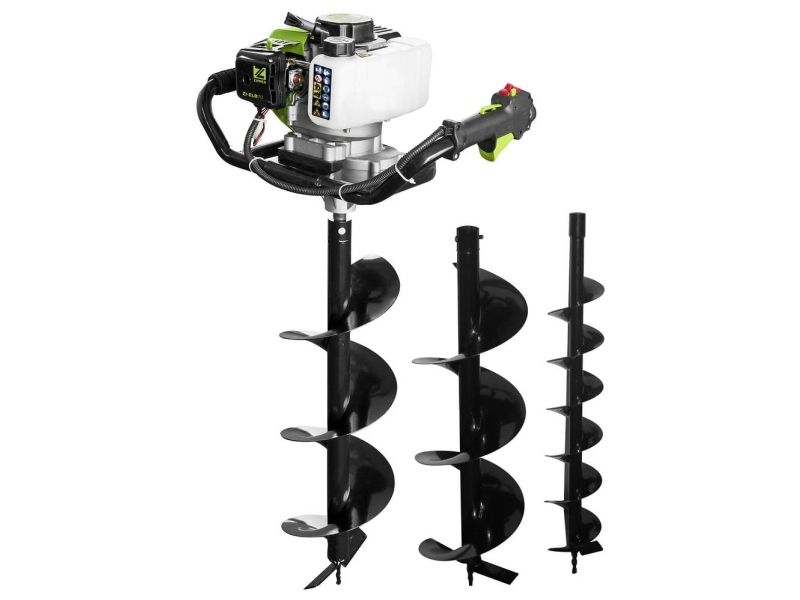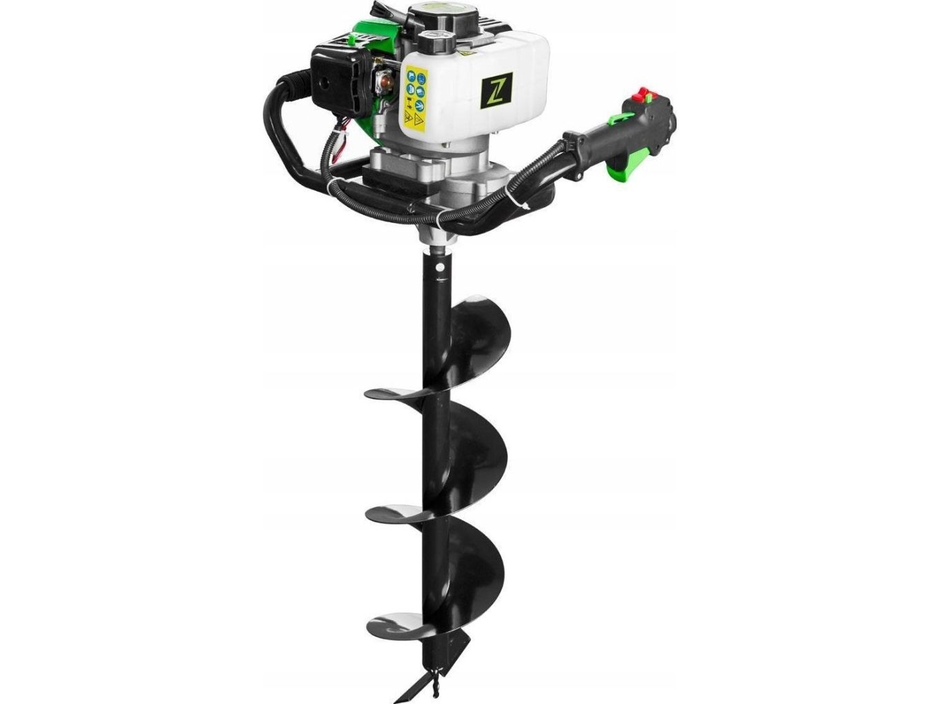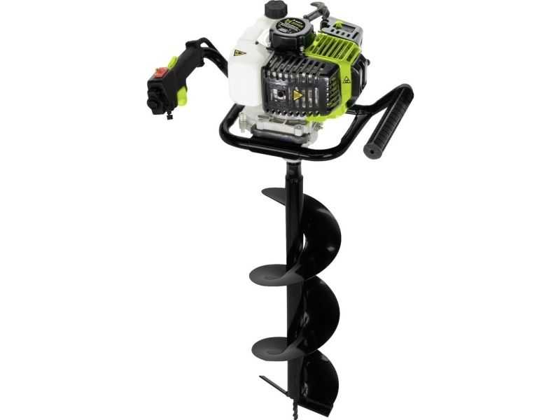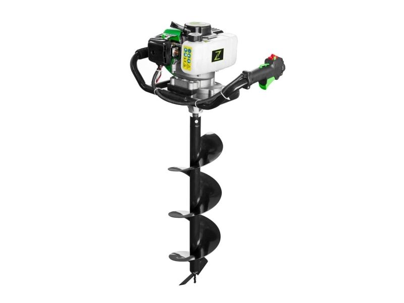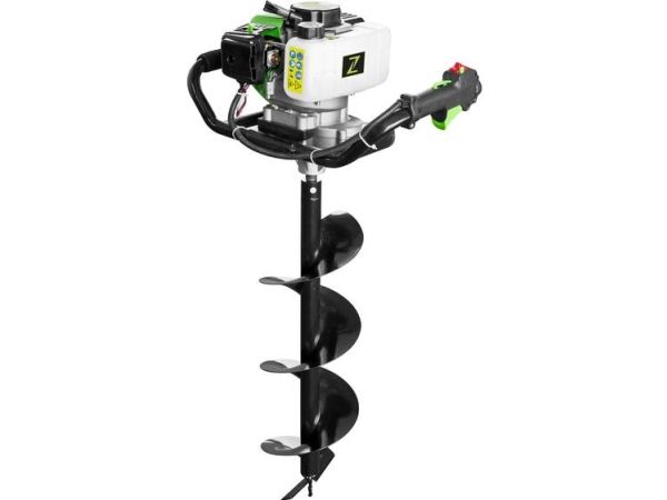 Jordhulborer ZI-ELB70 Luftkølet 1-cylinder-2-taktsmotor med centrifugalkobling · anti-vibrationssystem · stop-kontakt og gasbetjening På højre håndtag · bor-forlænger 40 cm valgfrit Jordboret ZI-ELB70 muliggør boring af huller på op til 20 cm diameter. På højre håndtag er både stopkontakten og gasbetjeningen monteret. I tilfælde af en fare kan stopkontakten dermed hurtigt nås. Med kun ca. 18.60 kg er boret let at betjene og transportere.