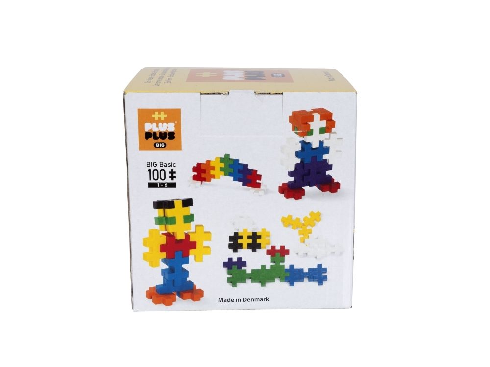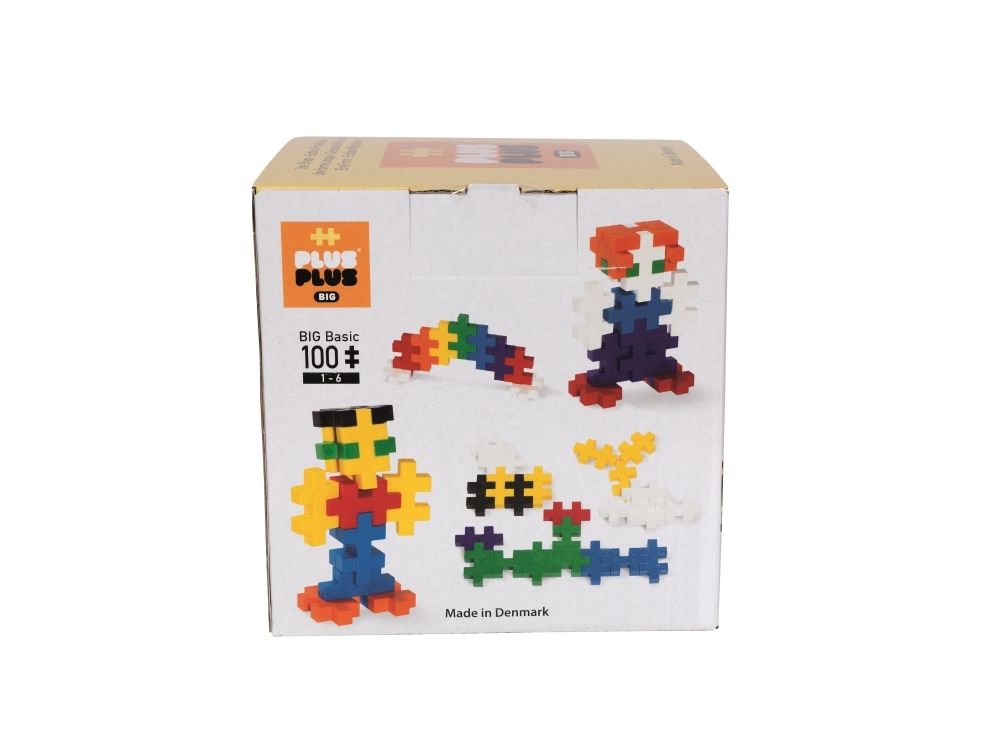 Denne basispakken inneholder 100 brikker. Fargemiksen består av røde, blå, grønne, gule, orange, lilla, sorte og hvite brikker.Produktet er kompatibelt med alle andre produkter fra Plus-Plus BIG.