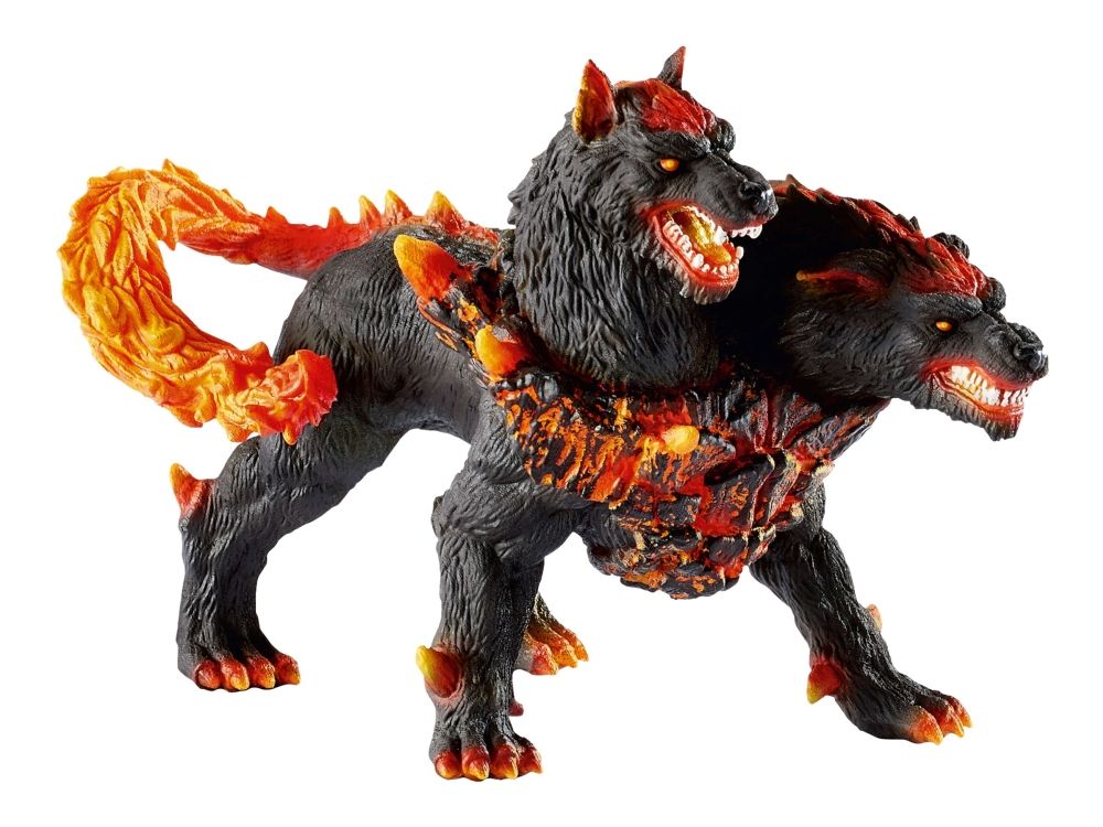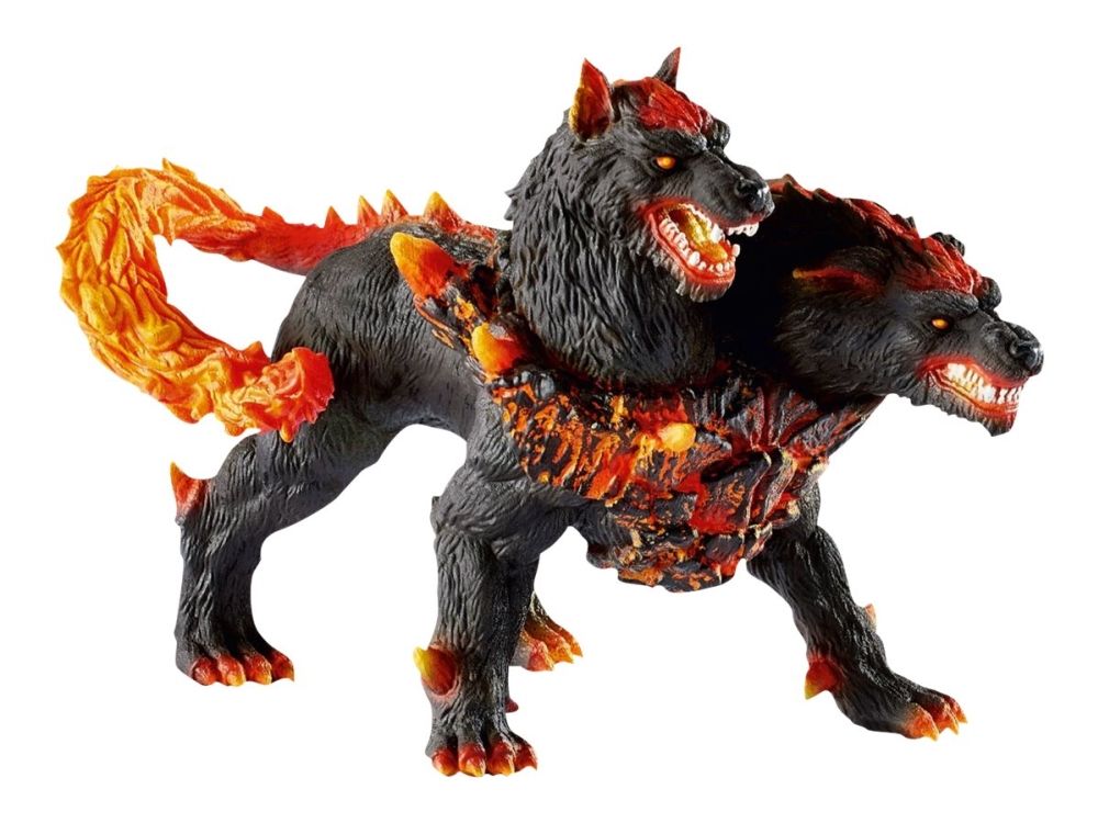 Forsiktig, ekstremt aggressiv: De som ønsker å besøke lavaverdenen, må man først passere helveteshunden. Og det er jammen ikke så lett. Han kan ikke bare brøle kjempehøyt, men har også to hoder, slik at han kan kjempe mot to stykker samtidig! Han bruker halen sin som en flammepisk i kamp, og bør inntrengerne flykte raskt! En rustning av grusomt varm magma beskytter han, så det er ikke rart at helvetehunden ikke er redd for noen! Det eneste som forstyrrer nattesøvnen hans er tanken på at den evige lavastrømmen en gang skal ta slutt ...
