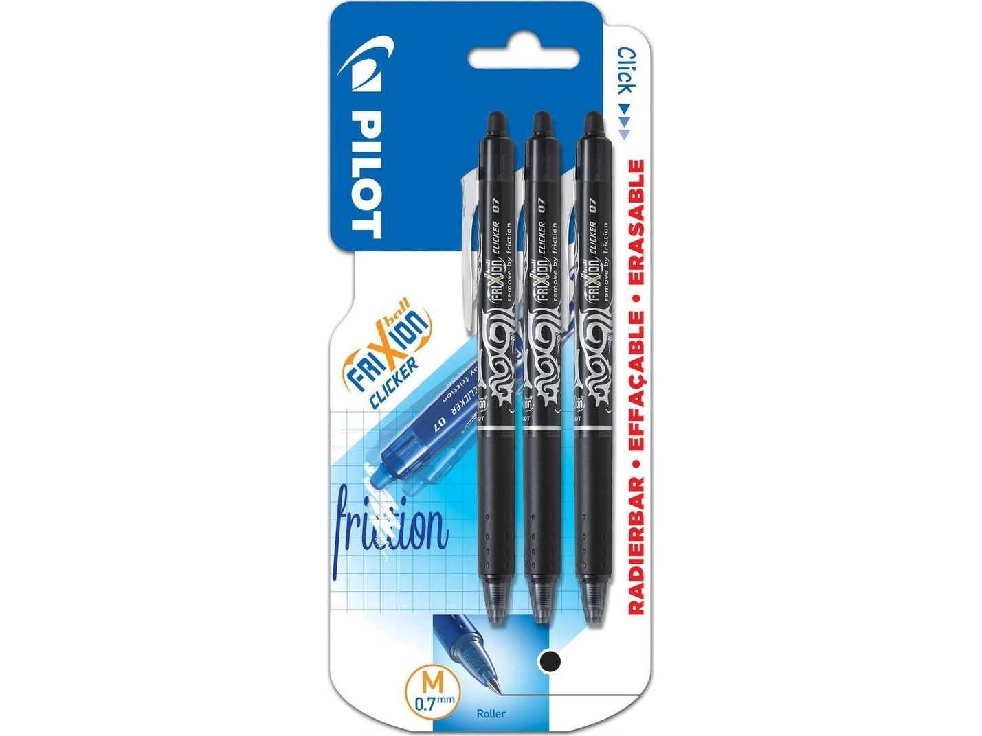 Pilot Frixion Clicker m/klik 0.7 mm sort i blister - (3 stk.)