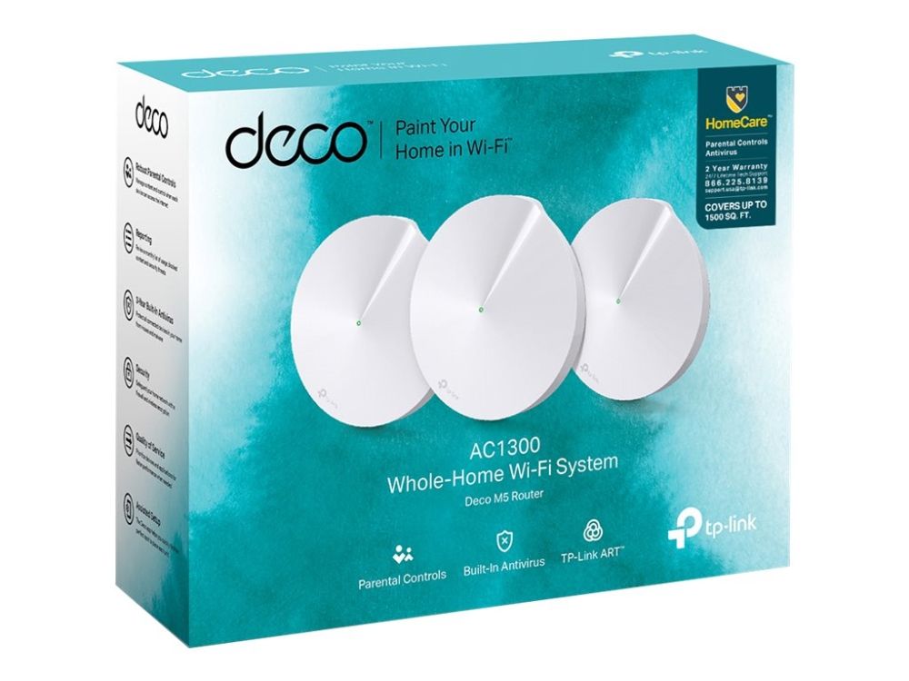Average routers are designed to send Wi-Fi in all directions but don't always reach every room. Range extenders improve coverage but create multiple networks for you to navigate. Deco M5 uses several units working together to replace your router and create seamless Wi-Fi in every room. Deco includes three separate features in one device - seamless coverage, antivirus and parental controls. Not only do you get strong Wi-Fi in every room of your home, you also get the most secure whole-home Wi-Fi with HomeCare protecting every device.