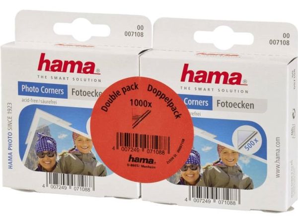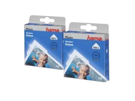 Hama selvklæbende fotohjørne dispenser dobbeltpakke, 2 x 500 hjørner. Transparent, hvid.