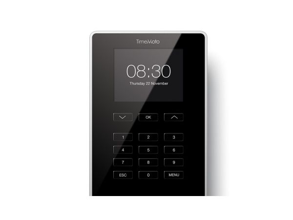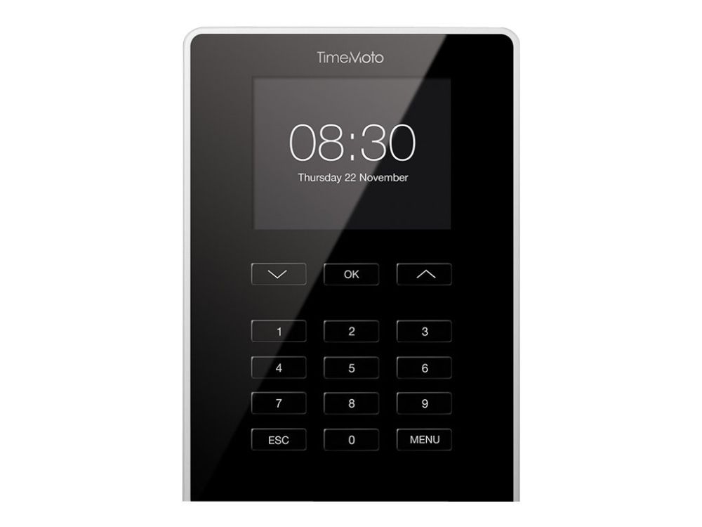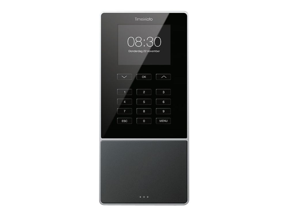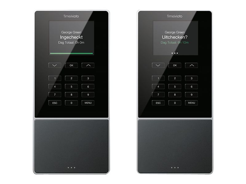 Safescan TimeMoto TM-616. Product colour: Black, Authentication type: Proximity card, Display type: TFT. Power source type: AC, AC input voltage: 110 - 240 V, DC input voltage: 12 V. Windows operating systems supported: Windows 10, Windows 7, Windows 8. Width: 215 mm, Depth: 99.5 mm, Height: 44.3 mm