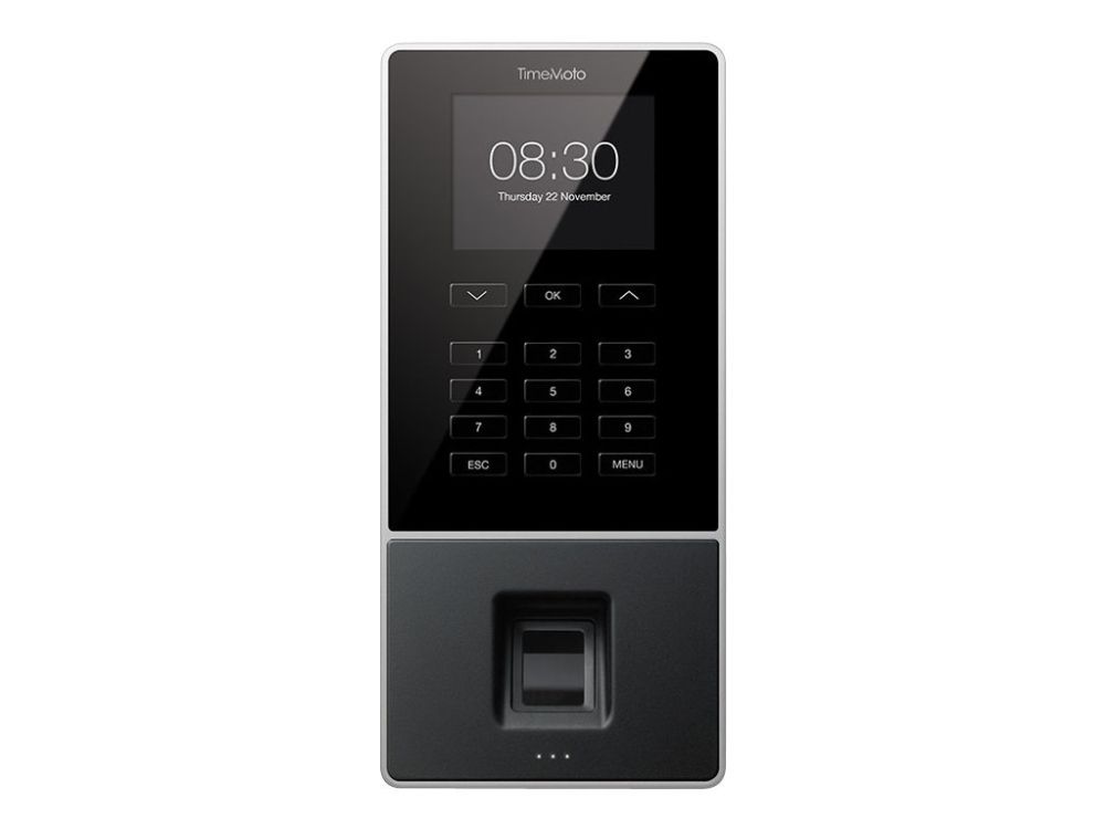 FLEXIBLE, SECURE & ACCURATE TIME REGISTRATION Experience flexible and secure clocking with the TimeMoto TM-626. Thanks to the integrated fingerprint and RFID reader, users can easily and securely register their working hours with their fingerprint or personal RFID badge. The TimeMoto TM-626 is suitable for up to 200 users and can store up to 10.000 time logs. Perfect for when you want to register and manage time more efficiently.