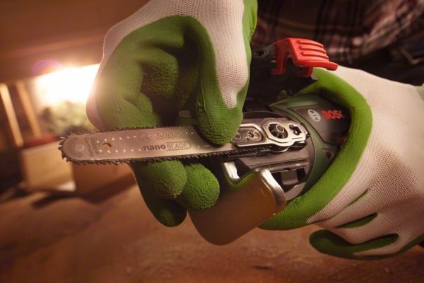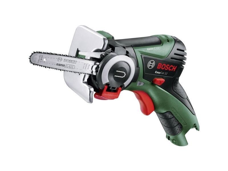 - Sawing close to edges thanks to the new design, e.g. to cleanly cut off branches close to the trunk - Easy, safe and quick saw blade change by simply opening the hatch, changing the saw blade and closing the hatch - The new sawing technology is absolutely maintenance-free, requiring no oiling or sharpening of the saw blade - The lithium-ion battery ensures that the saw is ready to use any time and anywhere. The battery is changeable, enabling it to be used in other tools in the Power for ALL System - Bosch Electronic for fingertip control when starting to saw - An attached storage loop can be used to hang up the tool on a branch or a ladder string during work