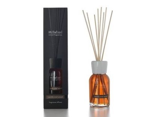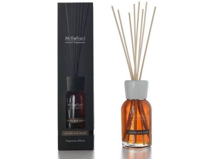 Millefiori Stick Diffuser 250 Ml Vanilla & Wood er et aromaterapiprodukt, der er designet til at sprede en varm og beroligende duft i dit hjem eller kontor. Diffuseren kommer i en glasflaske på 250 ml, og den er fyldt med en blanding af æteriske olier og duftstoffer. Duften, Vanilla & Wood, er en kompleks og sofistikeret duft, der indeholder noter af vanilje, cedertræ og musk. Vanilje giver duften en sød og blød note, mens cedertræ giver en varm og træagtig aroma, og musk giver en dyb og sensuel undertone.
