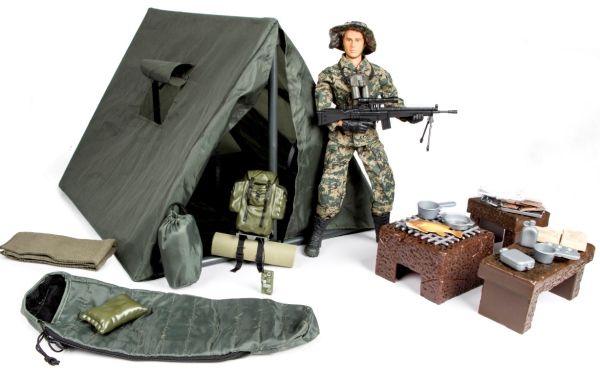 Militært telt Camp 1:6 med actionfigur 30,5 cm