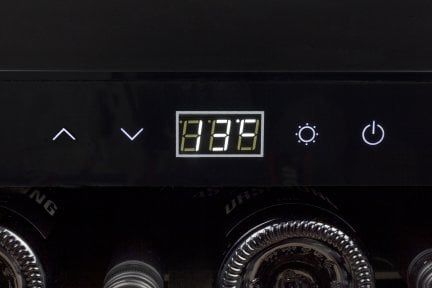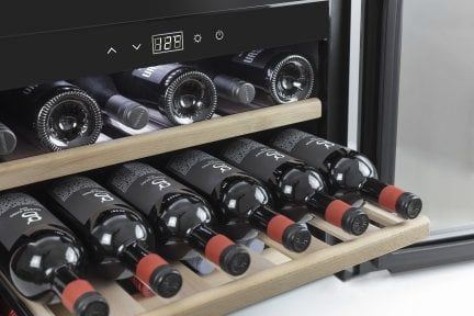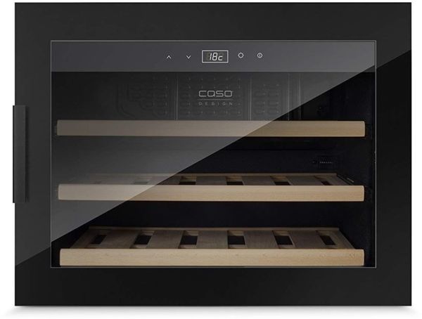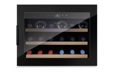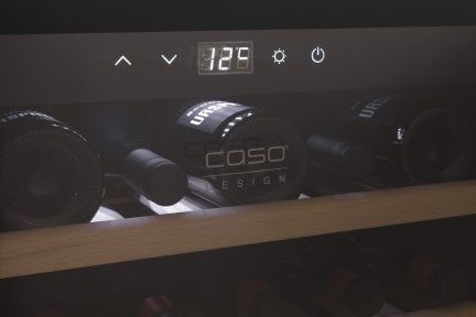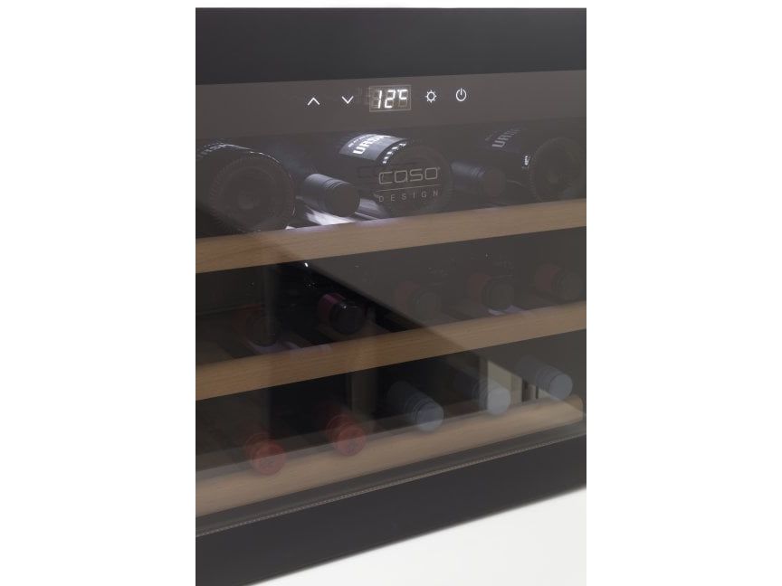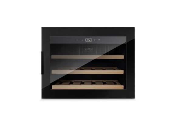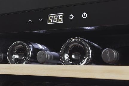 - High quality wine control device with compressor technology - One temperature zone - Smooth running compressors on vibration-reduced feet: provide the calm, quiet location your wine requires - Storage of up to 18 bottles (up to 310 mm in height) - 3-layer insulating glass with UV filter for optimum aroma protection - Excellent thermal insulation for the most economical energy consumption levels - Temperature electronically adjustable from 5 - 20 °C (41 - 68 °F) - The maximum temperature that can be reached inside the device cannot be significantly higher than the ambient temperature at the setup location - Sensor touch control - White LED temperature display of the cooling zone - Switchable interior lighting - Timeless design with elegant stainless steel front and ergonomic handle - Ball bearing mounted pull-outs with removable wooden bearing bases - Runs very quietly