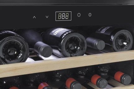 Den angivende flaskekapacitet er udregnet med en bordeauxflaske som standard og uden hylder i skabet. Dvs. at det faktiske antal af flasker som skabet kan indeholde, med hylder monteret, vil være mindre end den angivne mængde i produktets specifikationer.