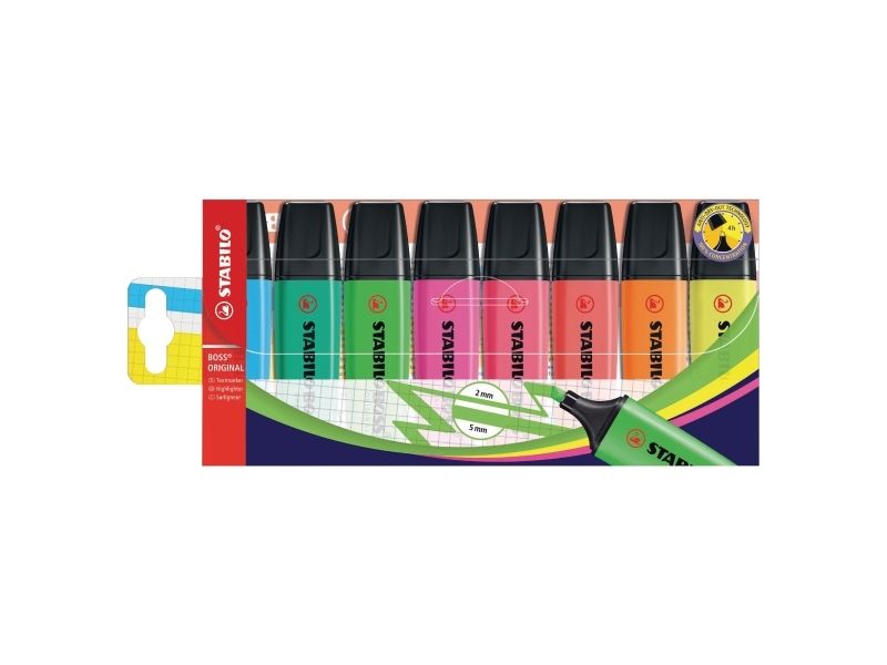 A wallet of 8 BOSS Highlighters in assorted colours