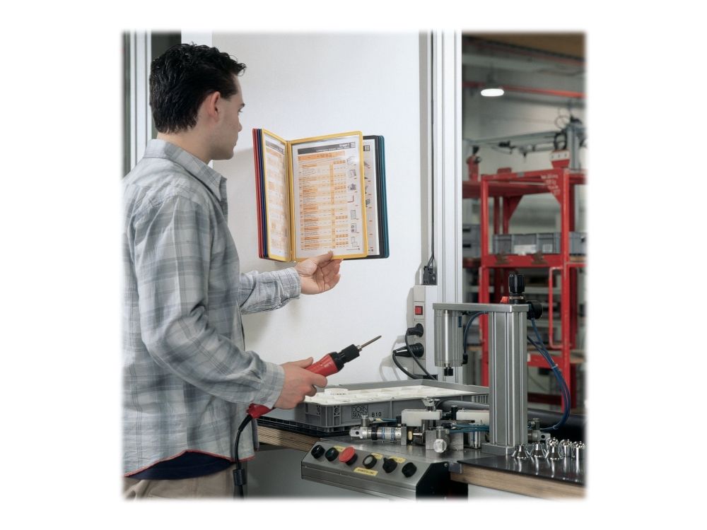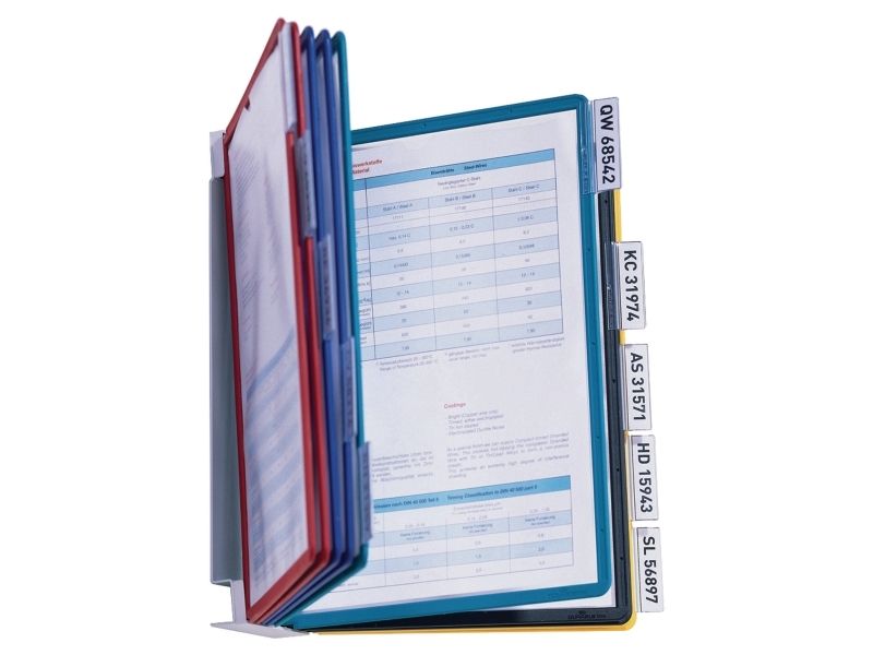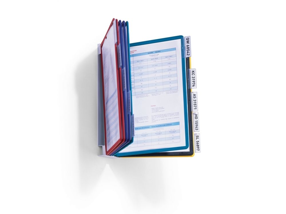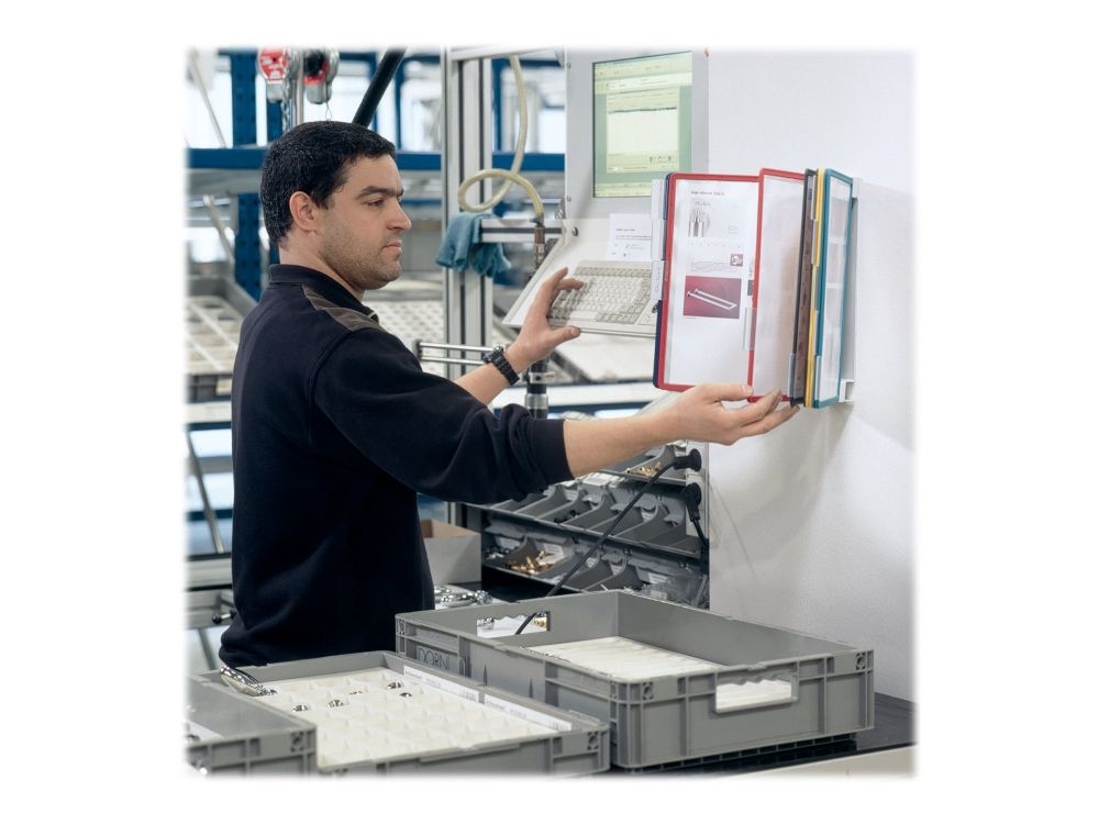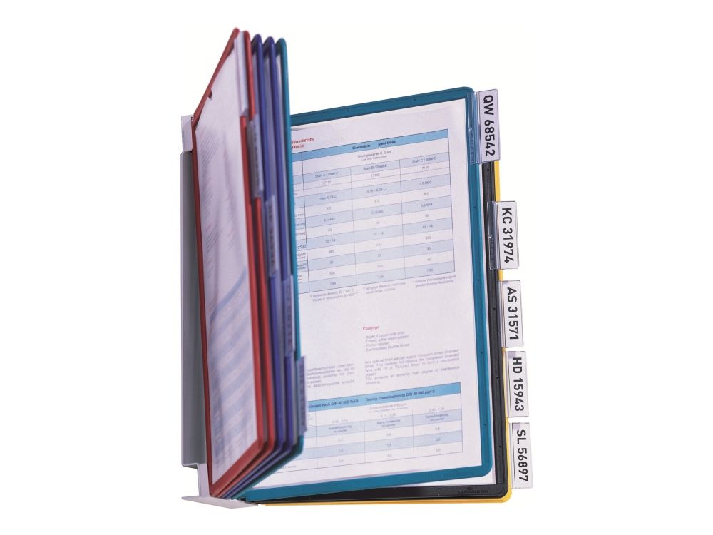 • Vægbeslag med 10 stk. SHERPA-registerlommer i A4-format • Registerlommer af polypropylen med farvede profilrammer og refelksionssvag folie • Inkl. faner med blanke indstik til markering af registerlommerne • Enkel montering på væg • Praktisk tapmekanisme, som sikrer nem udskiftning af tavlerne |