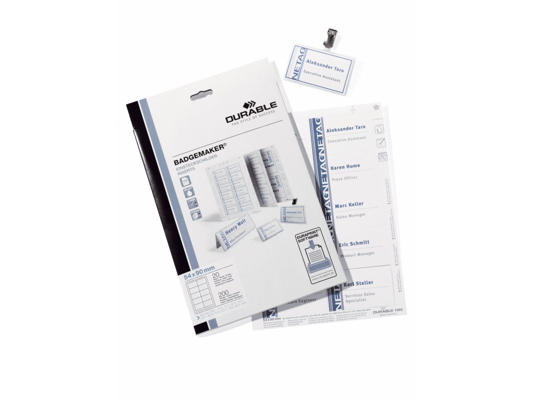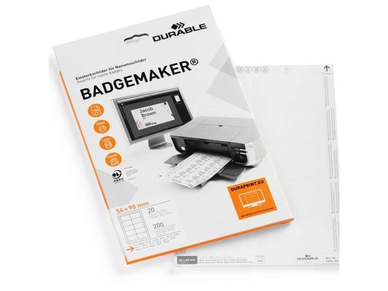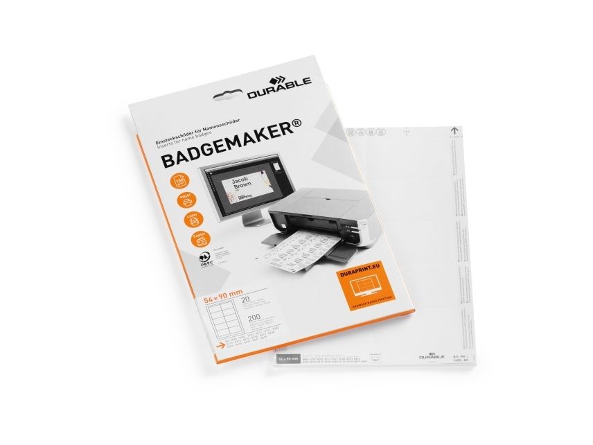 Durable BADGEMAKER® indstik til navneskilte 54x90 mm - (20 ark á 10 stk.)