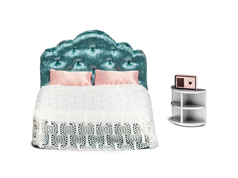 Unn deg en hvilestund med favorittboken din. I denne kontinentalsengen med gavl i plysj får du virkelig luksusfølelsen. Du kan krype ned mellom det vakre sengeteppet og madrassen, som er trukket i et silkeaktig stoff, og lene deg tilbake mot de to putene i samme type stoff. På nattbordet har du plass til radioen.