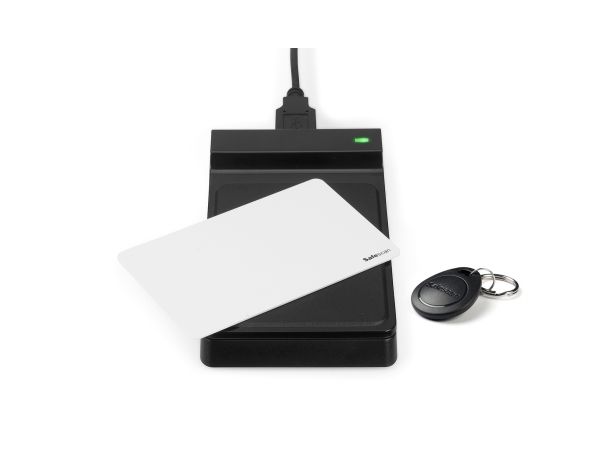 - USB reader for RFID cards - Reads 125KHz RFID cards and key fobs - Activate RFID cards directly at your PC - USB connection cable included - Small footprint, fits on any deskSafescan RF-150. Width: 115 mm, Depth: 64 mm, Height: 17 mm