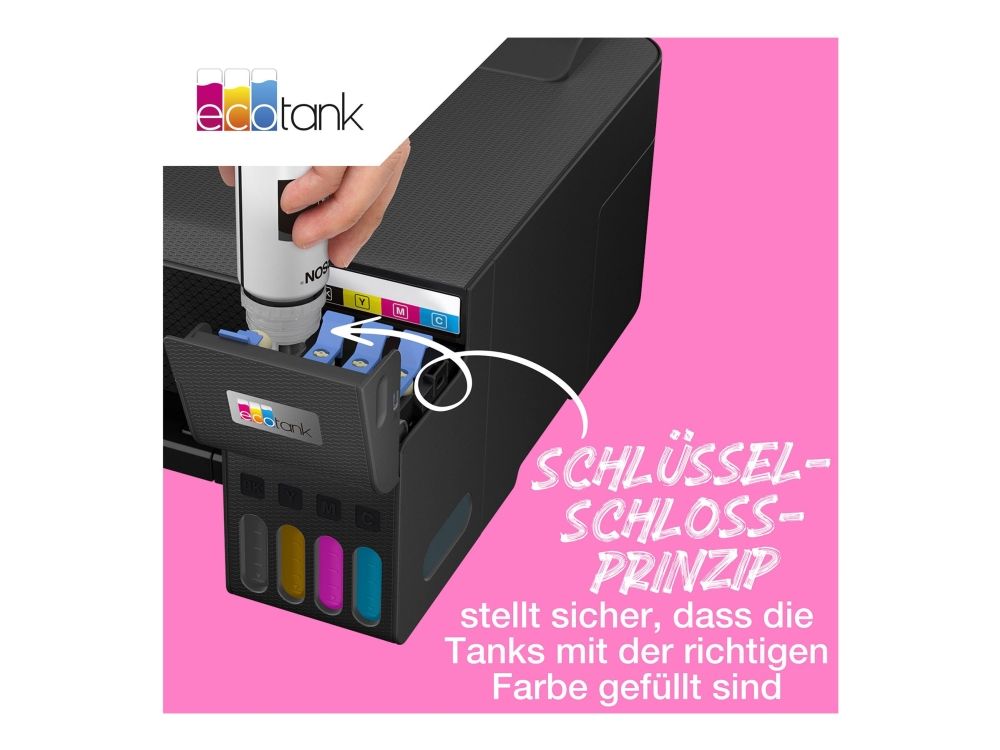Take the stress out of printing with the four-color 104 ink series. It's designed to give you a hassle-free, ultra-low-cost and mess-free solution for everyday printing. From one set of ink, you can produce thousands of pages without having to change a cartridge. When a refill is finally due, it's easy and mess-free thanks to the re-engineered bottles.