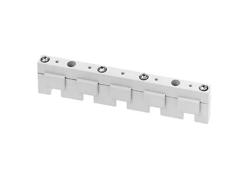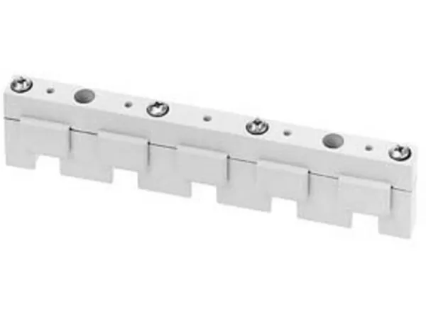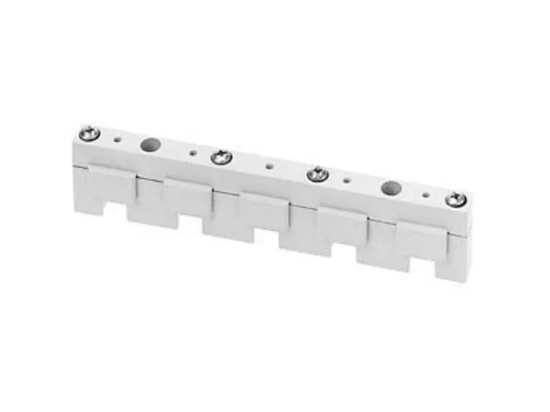 Samleskinne-system, tilbehør skinneafstand 40mm samleholder 5-polet 12x 5, 15x 5 som end og mellemholder samleskinnesystemer 8US til opbygning af beskyttelsesapparater som sikringsbelastningsskillekontakt og effektafbryder - sikker, pladsbesparende, overskuelig. Anvendelse af Siemens samleskinnesystemer 8US giver mange muligheder for installation af sportilkoblings-, koblings- og installationsapparater. På grund af den pladsbesparende modulkonstruktion og hurtig montage-kontaktering er en økonomisk elektroteknisk bestykning sikret i dagens installationsfordeler. Monteringen sker på langsgående holer, skinneafstanden er 60 mm. Siemens samleskinnesystemer 8US udmærker sig især ved: 1. Mekanisk fastgørelse og elektriske kontakter i én arbejdsgang. 2. Global godkendelse og dermed anvendelsesmuligheder inden for maskin- og anlægsbyggeri. 3. Nem udskiftning af enkeltenheder eller hele kombinationer. 4. Montagetidsbesparelse og reducering af omkostninger takket være færdigmonterede forbrugerkredse. 5. Høj driftssikkerhed takket være fingersikker afdækning af adapteren og apparatholder. 6. Stor båndbredde på anvendelige samleskinner for en nem tilpasning til strømstyrker op til 1.600 A. www.siemens.de/schaltgeraete. Siemens tilbyder en integreret portefølje af beskyttelses-, koblings-, måle- og overvågningsapparater, fordelersystemer samt kontakter og stikdåser til mere sikker og effektiv elektrisk infrastruktur i bygninger og industri.