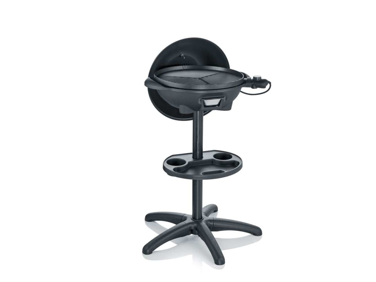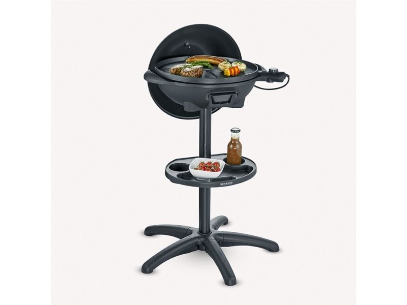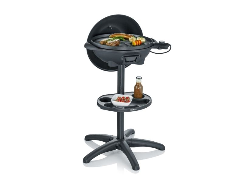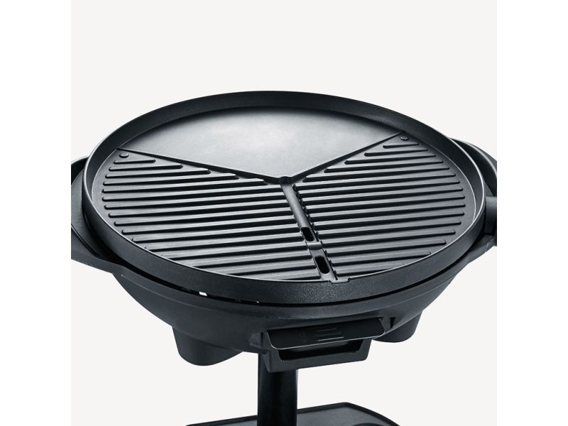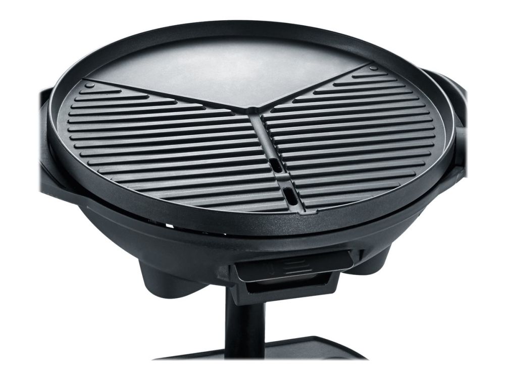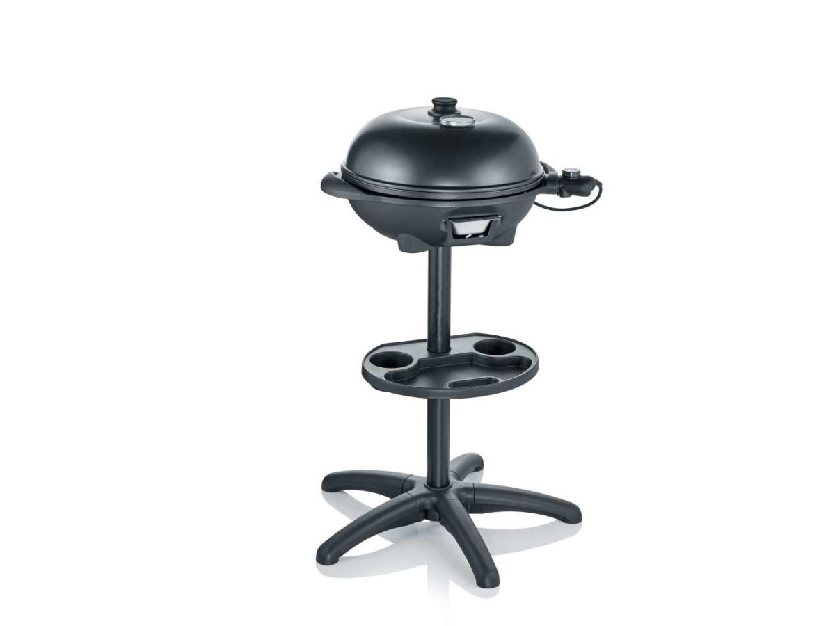 Grilling with hood and integrated thermometer easily removable metallic hood – useful as windscreen XXL connection cable: 2.8 m supply-line for more flexibility low generation of odours and smoke due to integrated fat drain ideal for BBQ on the balcony usable as table grill grill with smooth and ribbed surface for meat, vegetables and popular grill brandings stable base with integrated undershelf capacity grill surface: diameter 41 cm, approx. 1.320 cm2 grill surface with integrated fat drain: smooth surface (approx. 1/3), ribbed surface (approx. 2/3) detachable, dishwasher-safe fat tray metallic hood with cool touch handle integrated thermometer variable thermostat dimensions (WxHxD): approx. 42 x 83 x 58 (without hood) and 42 x 96 x 58 cm (with hood) working height: approx. 83 cm heat-resistant painting pilot light ceramic coating cable-length: approx. 2.8 m