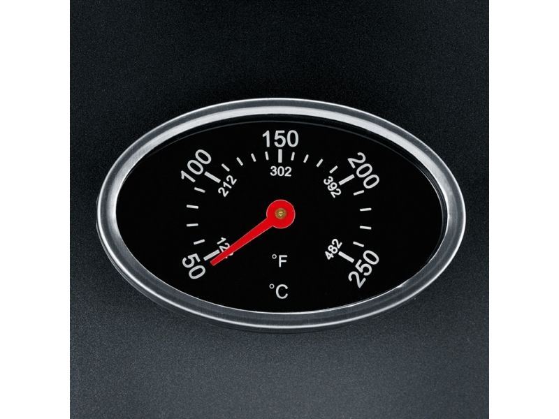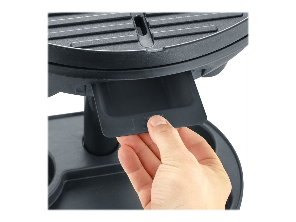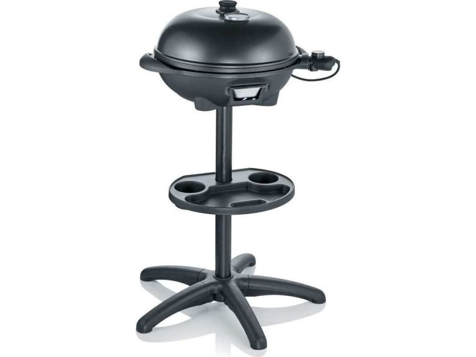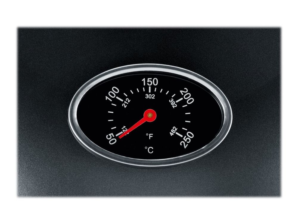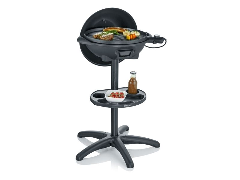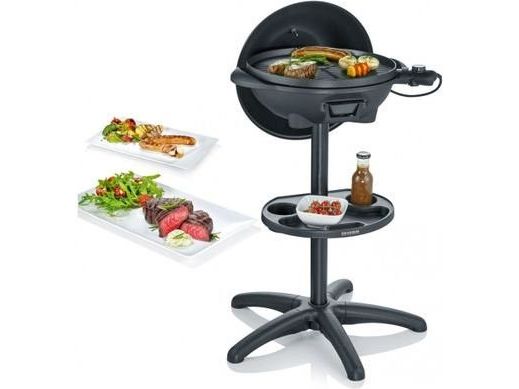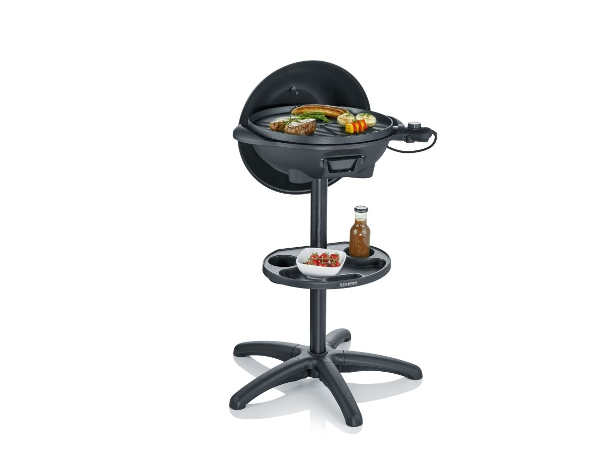 Grilling with hood and integrated thermometer easily removable metallic hood – useful as windscreen XXL connection cable: 2.8 m supply-line for more flexibility low generation of odours and smoke due to integrated fat drain ideal for BBQ on the balcony usable as table grill grill with smooth and ribbed surface for meat, vegetables and popular grill brandings stable base with integrated undershelf capacity grill surface: diameter 41 cm, approx. 1.320 cm2 grill surface with integrated fat drain: smooth surface (approx. 1/3), ribbed surface (approx. 2/3) detachable, dishwasher-safe fat tray metallic hood with cool touch handle integrated thermometer variable thermostat dimensions (WxHxD): approx. 42 x 83 x 58 (without hood) and 42 x 96 x 58 cm (with hood) working height: approx. 83 cm heat-resistant painting pilot light ceramic coating cable-length: approx. 2.8 m