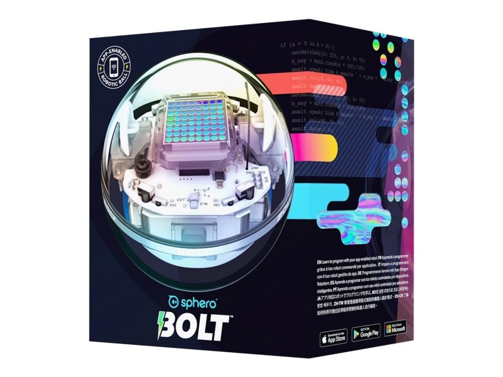 Sphero BOLT is ideal for educators to send home with students. With BOLT, STEAM learning can be easily facilitated at home and guided by parents. Packed with plenty of programmable sensors and a colorful LED light matrix, Sphero BOLT is paving the way for the next generation of coders.