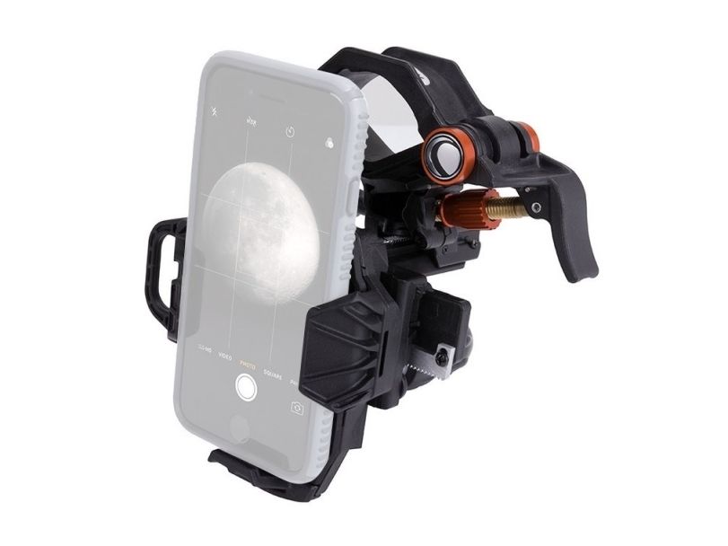 NOTE: NexYZ fits telescopes, spotting scopes, binoculars, monoculars, and microscopes. It will not fit riflescopes. NexYZ will work with most phone cases, but if you have an especially large phone case with built-in batteries or a folio style case, Celestron recommends removing it for optimal use.