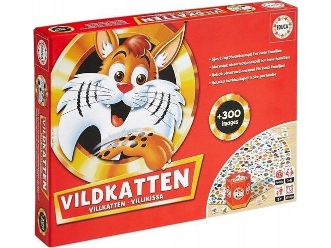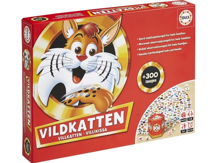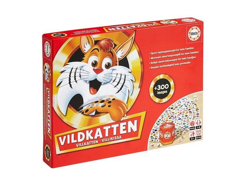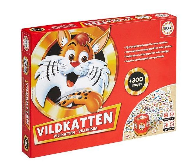 Villkatten, er det morsomme og populære observasjonsspillet for hele familien. Med +300 bilder. Snu bildekortet, og se hvem som raskest finner motivet på spillebrettet! Det krever både overblikk og konsentrasjon. Spillet kan spilles på 3 forskjellige måter. Spilletid: 20 min. Antall deltagere: 1-6. Fra 5 år.