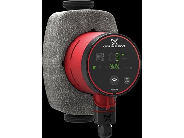 ALPHA2 og ALPHA3 tilbyder samme lave energiforbrug.ALPHA3 har dog flere fordele og funktioner. F.eks. kan du via din smartphone kommunikere trådløst med pumpen, fejlfinde, benytte den indbyggede indreguleringsfunktion og generere en rapport, som anvendes som dokumentation ifm. ibrugtagningstilladelse.Cirkulationspumpe af vådløbertypen med høj virkningsgrad, beregnet til cirkulation af væsker i varmeanlæg. Med et energieffektivitetsindeks (EEI) i verdensklasse langt under ErP-benchmarket sikrer pumpen væsentlige energibesparelser.ALPHA3 har indbygget Bluetooth og styres via smartphone eller tablet ved hjælp af Grundfos GO Remote-appen. Appen giver trinvis vejledning til konfiguration af pumpe samt vedligeholdelse og idriftsættelse.ALPHA3 kommunikerer direkte med Grundfos GO Balance-appen, hvilket gør det muligt for installatører at foretage hurtig og nem indregulering.AUTOADAPT-funktionen, der er integreret i radiator- og gulvvarme-tilstand, justerer løbende pumpeydelsen til det aktuelle varmebehov, dvs. anlæggets størrelse og det skiftende varmebehov i årets løb. Funktionen AUTOADAPT finder den indstilling, der giver optimal komfort og minimalt energiforbrug. Dermed giver det også hurtig, sikker og nem idriftsættelse.Funktioner