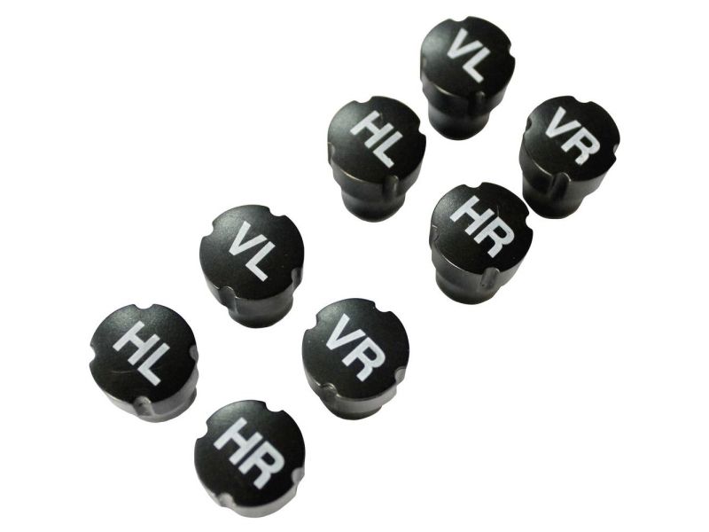 Med påtrykt dækmarkeringer VL, HL, VR, HR
