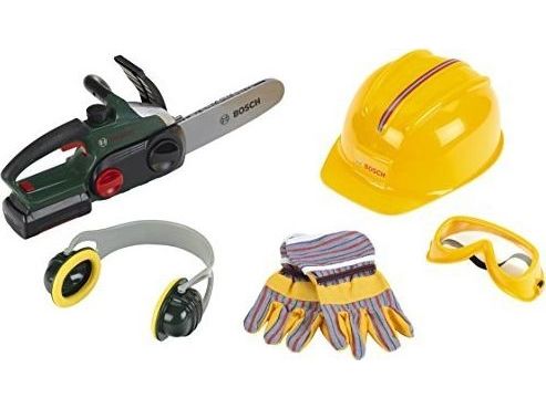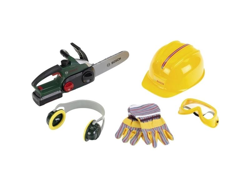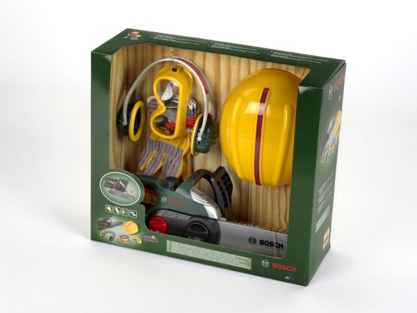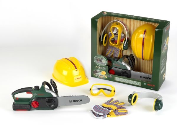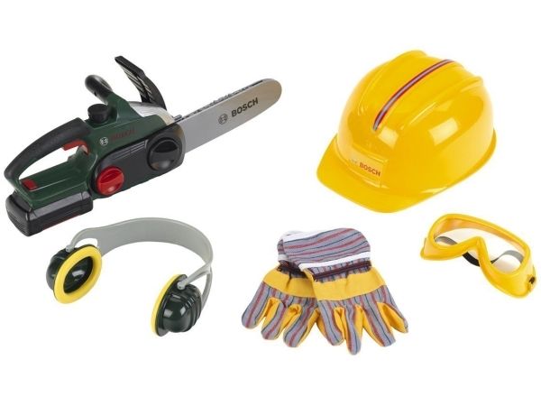 Theo Klein Bosch chain saw ii + helmet + work gloves, Bygning, 3 år, AA