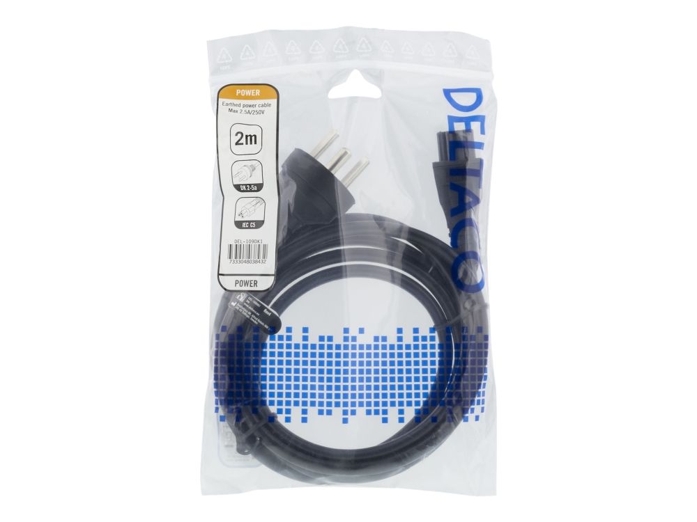 DELTACO - Strømkabel - DK 2-5A (hann) til IEC 60320 C5 - 250 V - 2.5 A - 2 m - svart - Danmark