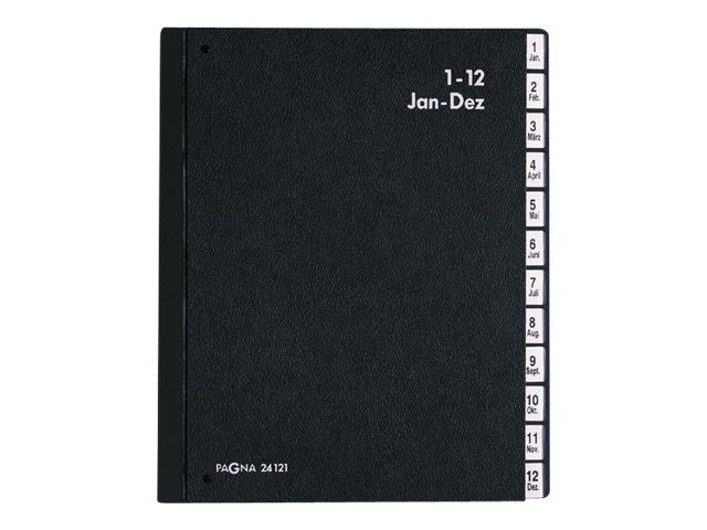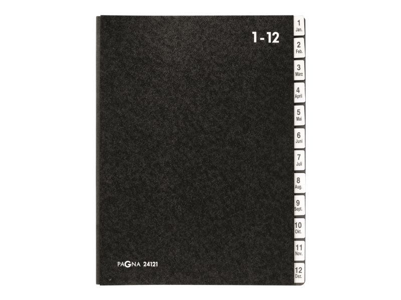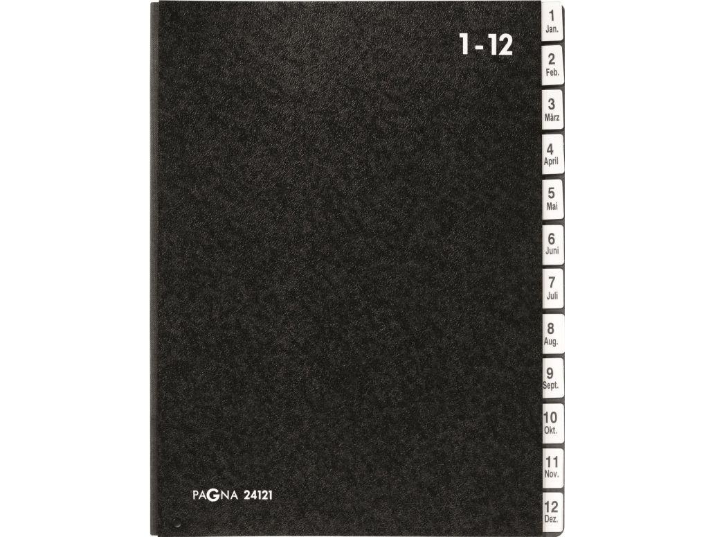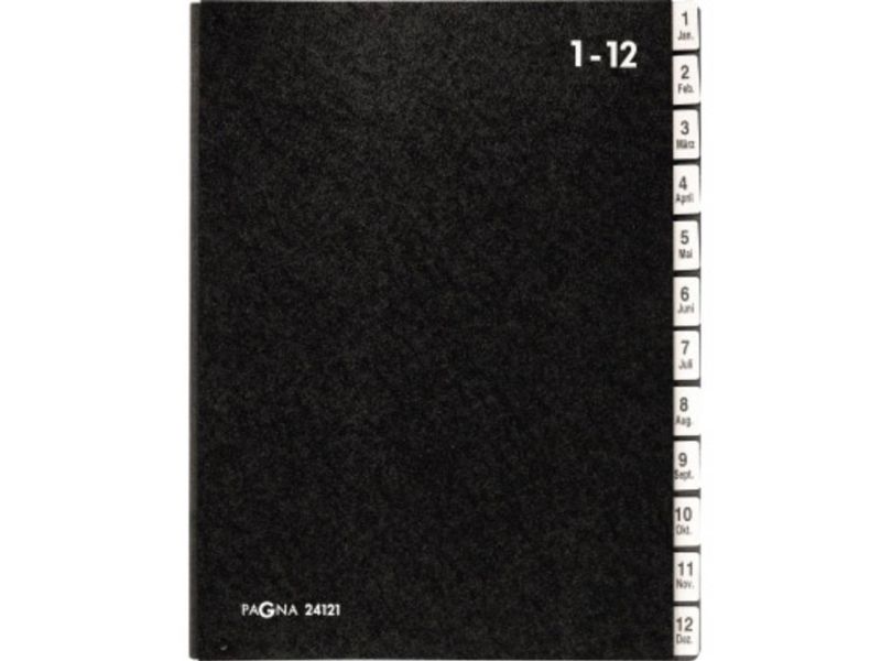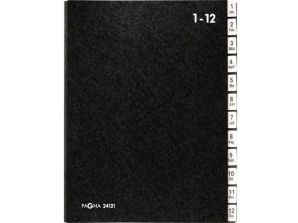 Pagna - Inndeler - kan utvides - 12 rom - 12 deler - fortrykt: Jan-Dec, 1-12 - med fliker - svart